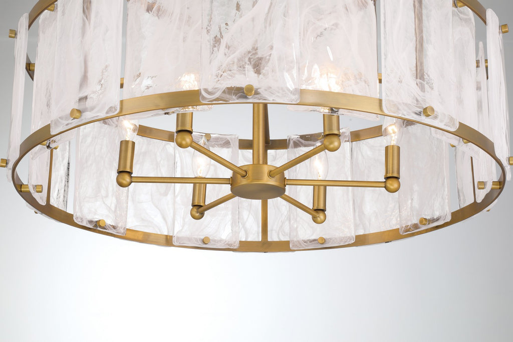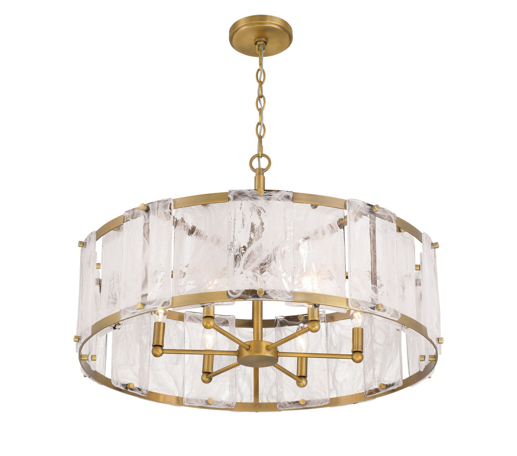 6-Light Pendant - Legacy Brass with White Swirl Glass