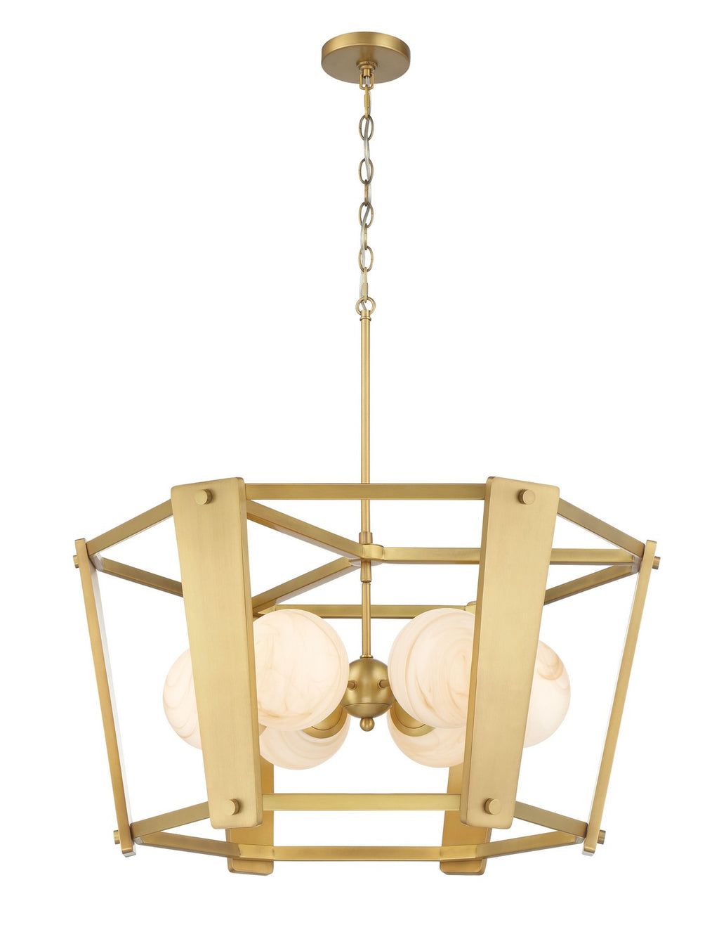 6-Light Pendant - Legacy Brass with Etched Opal Amber Swirl Glass