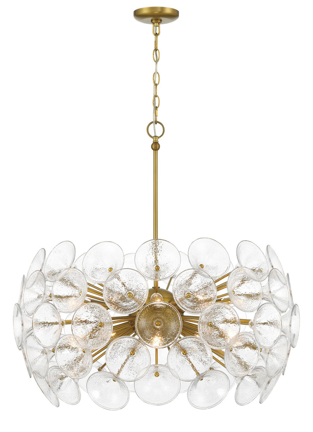 10 Light Chandelier in Soft Brass Finish with Textured Clear Fluted Glass
