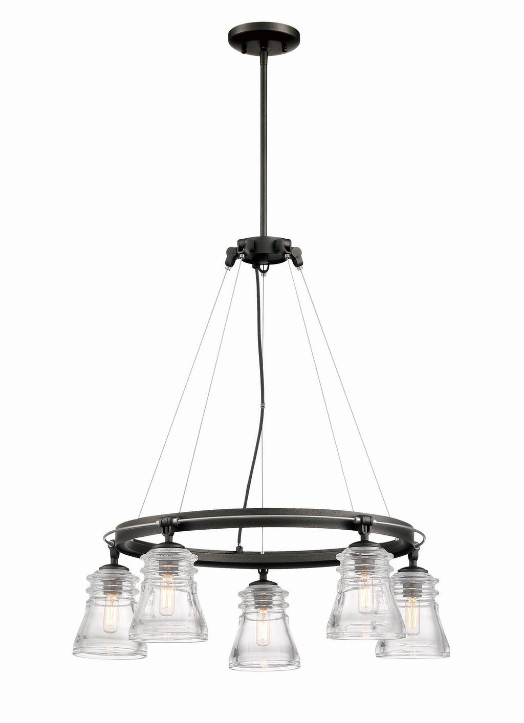 5 Light Chandelier in Smoke Iron and Brushed Nickel Finish with Clear Pressed Glass