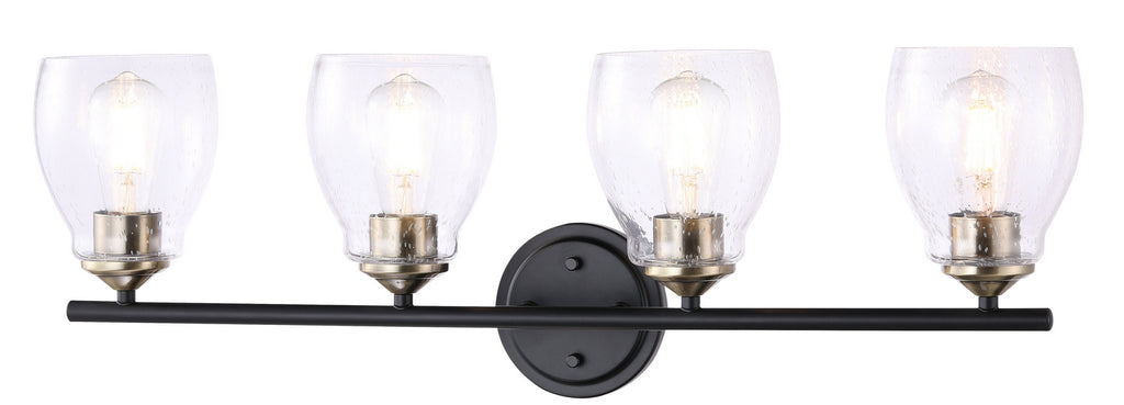 4 Light Bath in Coal with Stained Brass Finish with Clear Seeded Glass