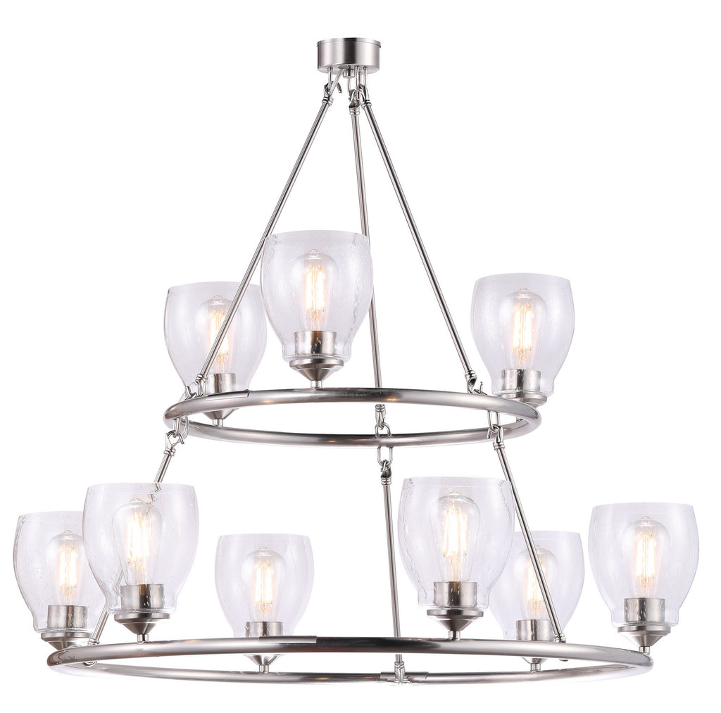 9 Light Chandelier in Brushed Nickel Finish with Clear Seeded Glass