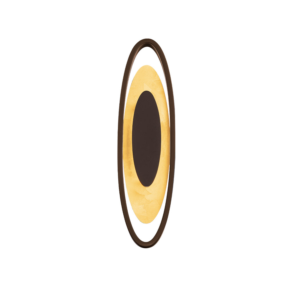This mesmerizing sconce sets a tone of elegance with hand applied gold leafing and concentric bronze ovals. Inspired by deco artwork, this classic LED luminaire complements your space with creativity and reimagination.