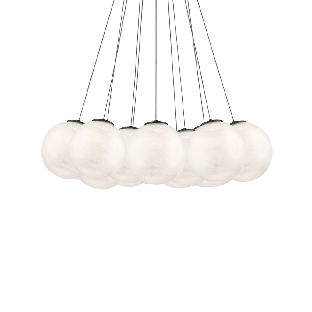 Bring dramatic visual flourish into your restaurant, hotel lobby or event space with Cosmic's massive dazzling art glass spheres— when filled with light, the bubbling and marbling effects of the 7-step art-glassmaking process captivates the room like celestial forms. It's easy to install, it's easy to adjust the length of the suspension, and it's easy to marvel at this spectacular piece, whether you choose the single pendant form or the chandelier.