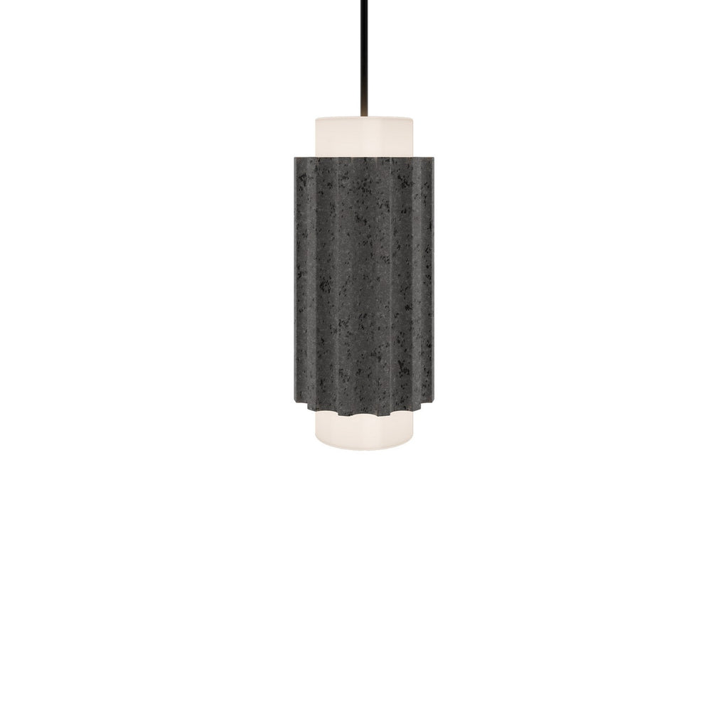 Just like its namesake, the Caviar pendant is prized for its subtle richness and texture. Its fluted black basalt stone column surrounds an etched opal glass shade, offering a soft, radiant glow delivered by color temperature adjustable LEDs from both the top and bottom. The 16-inch Caviar pendant is available in a choice of beige travertine accented by aged brass, or basalt stone complemented by a black finish.