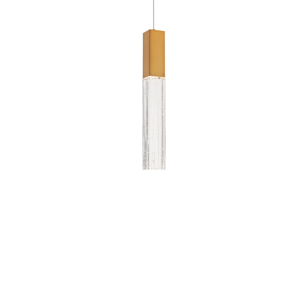 In a luxe finish, the Cinema 16-inch mini pendant makes a modern statement that's right in line with the latest trends. Painstakingly V-cut seeded crystal adds understated glamour when it fills with light sourced from color temperature selectable, high-performance LEDs. Cinema is available in a choice of aged brass or black finishes.
