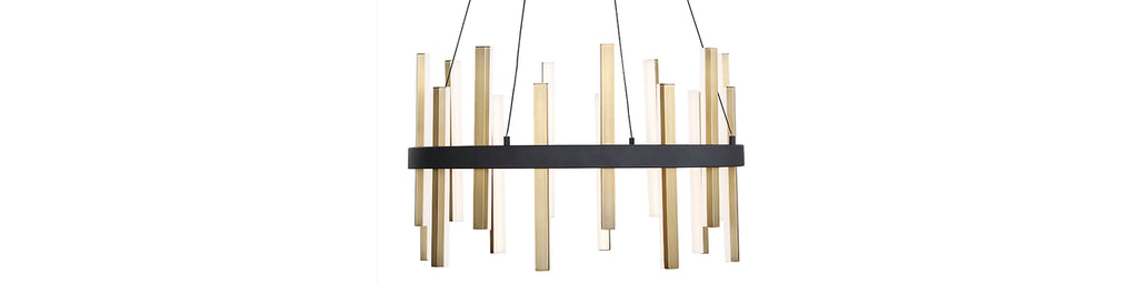 Like a dynamic instrument of musical chimes. Harmonix plays to the rhythm of light. Beautiful playful light. A two tone finish features black with aged brass.