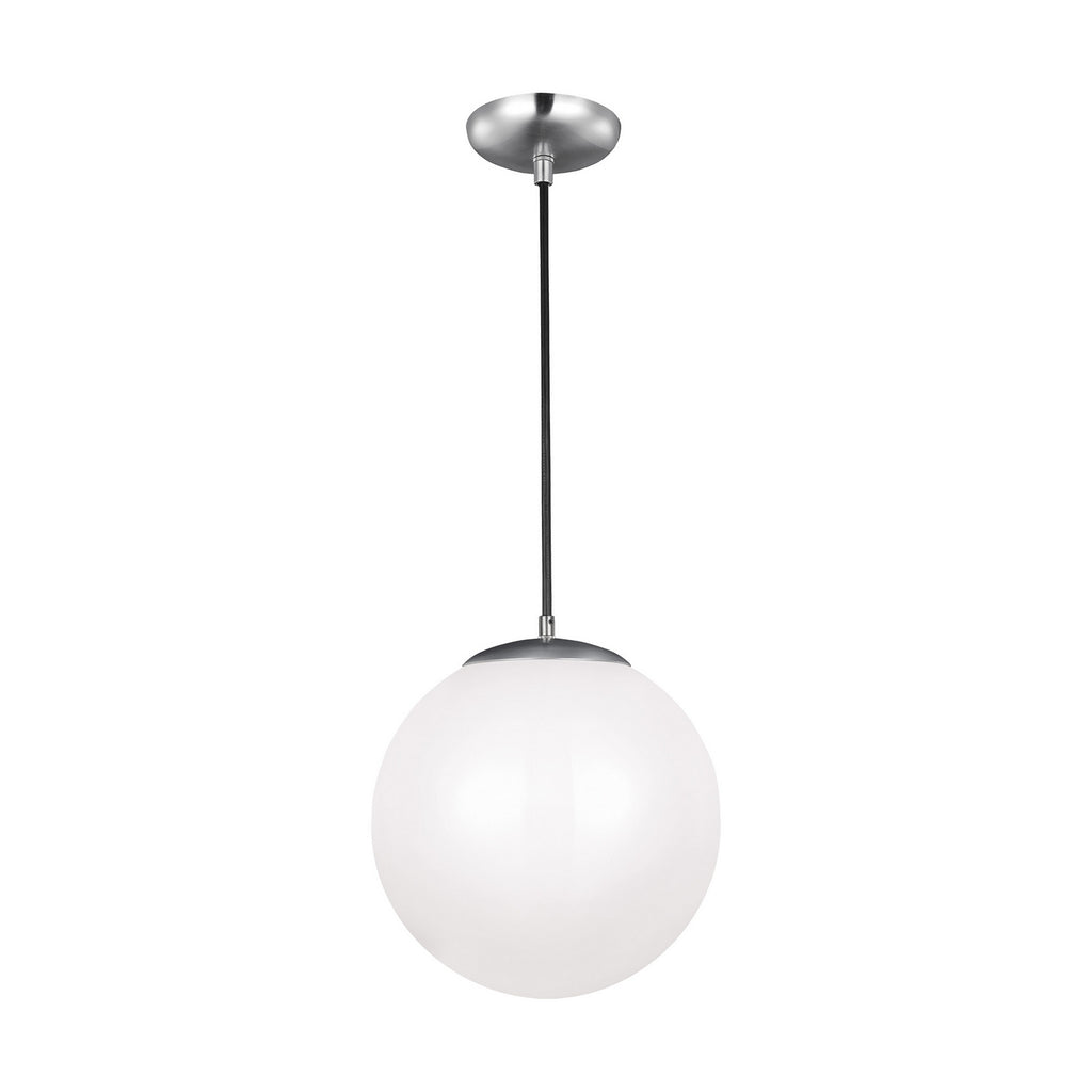 The Leo - Hanging Globe one light indoor pendant in satin aluminum is the perfect way to achieve your desired fashion or functional needs in your home. While hanging globes are one of lighting's hottest trends, Sea Gull's timeless Leo Collection has been around for 50 years! Constantly evolving with the times, these classic pendants are now offered with NEW Clear Seeded glass and in Satin Aluminum finish. Adjustable cloth cords allow for unlimited variations of hanging heights. All glass softly diffuse the light, each fixture comes with 54†of cuttable cord to customize the installation exactly to your needs. Easily convert every piece in the collection to LED by purchasing LED replacement lamps sold separately. All fixtures are qualified and California Title 24 compliant and damp rated for use in sheltered, damp environments like bathrooms, covered patios or porches.