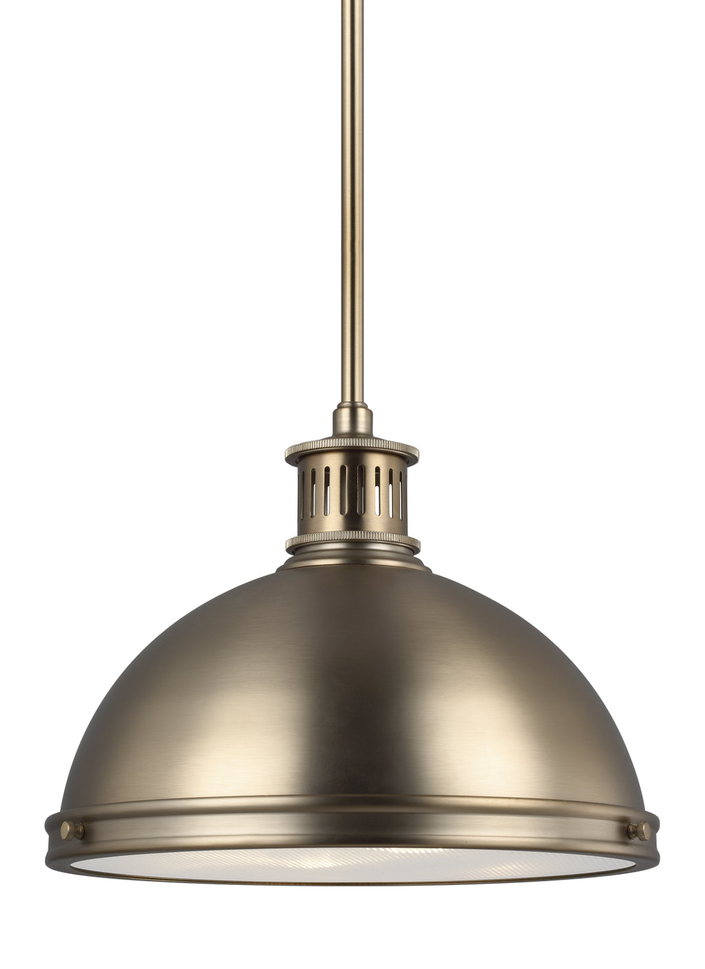 The Pratt Street Metal two light indoor pendant in satin brass supplies ample lighting for your daily needs, while adding a layer of today's style to your home's décor. Inspired by industrial lighting, the hard-working, large-scale Pratt Street metal pendants by put light where you need it, while making a significant design statement. Offered in a choice of Brushed Nickel, Satin Bronze or Autumn Bronze finishes, the one-light, two-light and three-light pendants are all fully enclosed with a prismatic diffusor at the bottom to spread light output evenly and alleviate glare. The pendants are available in incandescent and ENERGY STAR-qualified LED versions, and all can easily convert to LED by purchasing LED replacement lamps sold separately.