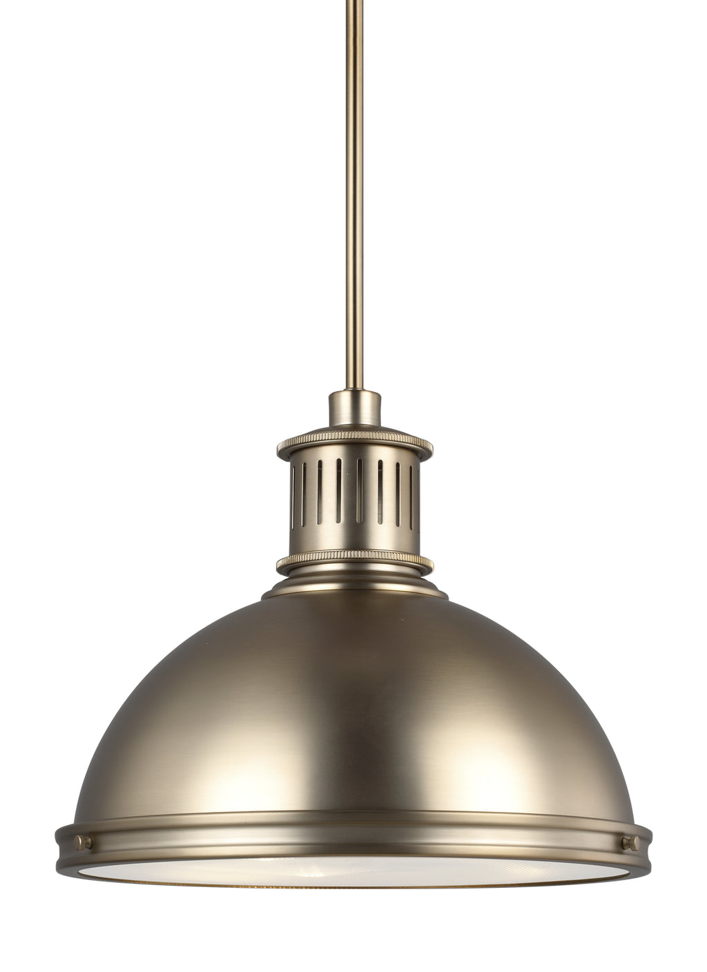The Pratt Street Metal three light indoor pendant in satin brass provides abundant light to your home, while adding style and interest. Inspired by industrial lighting, the hard-working, large-scale Pratt Street metal pendants by put light where you need it, while making a significant design statement. Offered in a choice of Brushed Nickel, Satin Bronze or Autumn Bronze finishes, the one-light, two-light and three-light pendants are all fully enclosed with a prismatic diffusor at the bottom to spread light output evenly and alleviate glare. The pendants are available in incandescent and ENERGY STAR-qualified LED versions, and all can easily convert to LED by purchasing LED replacement lamps sold separately.
