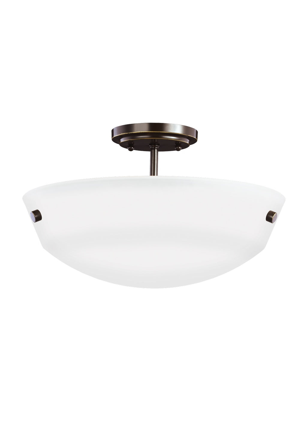 The Kerrville two light indoor semi-flush convertible in bronze supplies ample lighting for your daily needs, while adding a layer of today's style to your home's décor. With a simple, airy appearance, the Kerrville lighting collection by embraces its modern design roots while enhancing virtually any homes decor. Tubular steel arms extend outward and curve to present beautiful tapered, Satin Etched glass shades. The collection has a Brushed Nickel, Burnt Sienna or Chrome finish and offers three-, five- and nine-light chandeliers, a one-light mini pendant, one- and three-light pendants, a two-light semi-flush mount which can convert to a pendant, and one-, two-, three- and four-light bath fixtures. Incandescent and ENERGY STAR-qualified LED lamping are available, all fixtures are California Title 24 compliant.