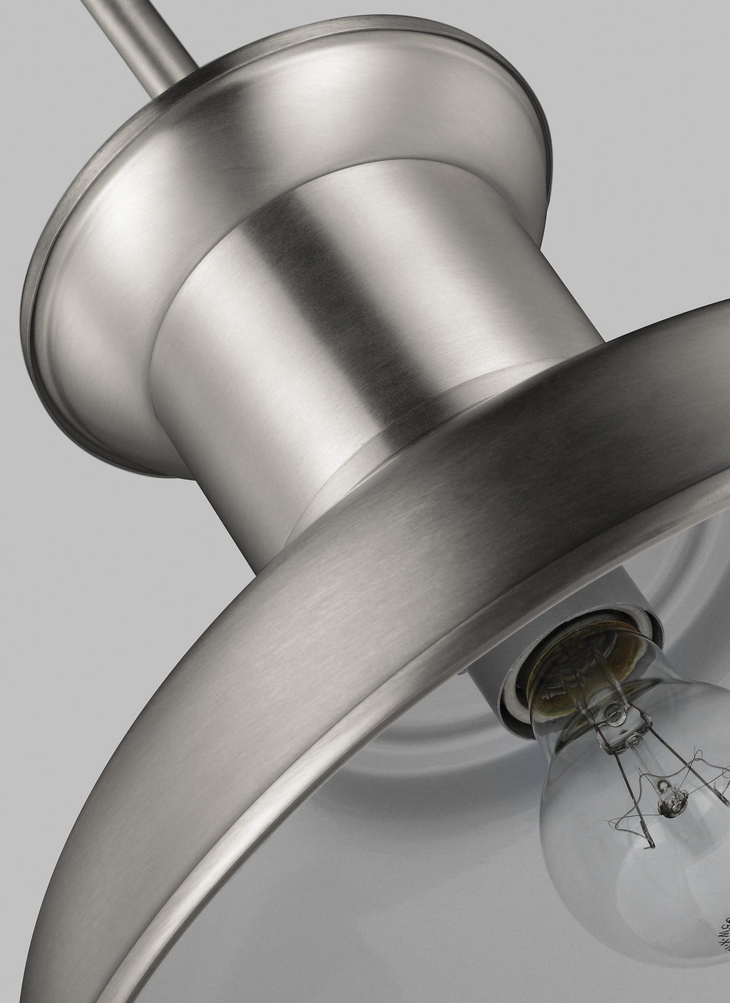 The Fredricksburg one light outdoor pendant fixture in satin aluminum enhances the beauty of your property, makes your home safer and more secure, and increases the number of pleasurable hours you spend outdoors. The traditional Fredericksburg outdoor lighting collection by is an authentic take on the classic station light, perfect for a coastal hideaway, country home or urban abode, and can even be used indoors to enhance rustic decor. The two finish options of Satin Aluminum and Weathered Copper create completely different looks. Compliant with Dark Sky standards, the fixtures purposefully direct light downward, limiting any light leak out the sides. The collection includes a one-light outdoor pendant and small and large one-light outdoor wall lanterns. Incandescent, integrated LED and ENERGY STAR-qualified LED lamping are available. The advanced, integrated LED option has warm-on-dim technology that warms in color when dimmed, going from 2700K to 2200K and is California Title 24 compliant.