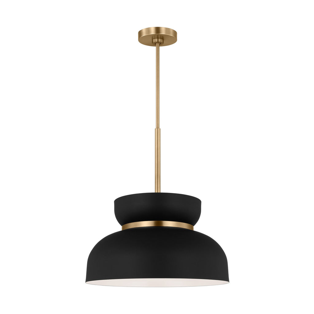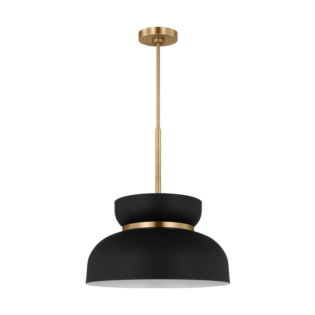 Defined by its modern, cinched silhouette, the Drew & Jonathan Pemberton Medium Pendant adds a sleek look with a touch of retro style through its dome-like metal shade and burnished brass metal accents. Available in two finishes, Midnight Black and Matte White, the Pemberton looks great on its own or when grouped in multiples. This product may be mounted on a sloped ceiling and is cETL listed for damp locations, making it the perfect lighting solution for any space.