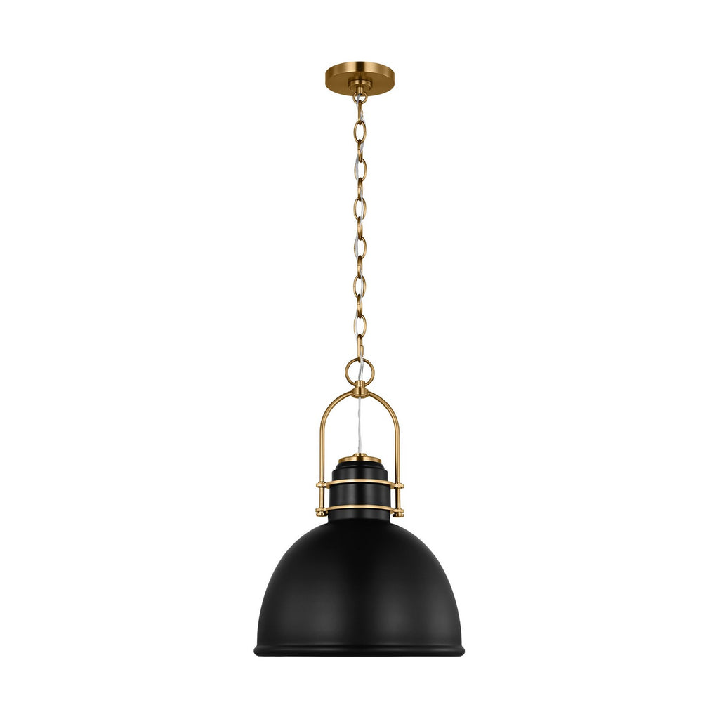 Vintage enameled factory pendants inspired the Upland series by Chapman & Myers. Simple yet impactful, these Dome Pendants are suspended from a unique inverted U-shaped yoke. The yoke and mounting hardware are finished in brass, contrasting the black or cream-finished metal shade.