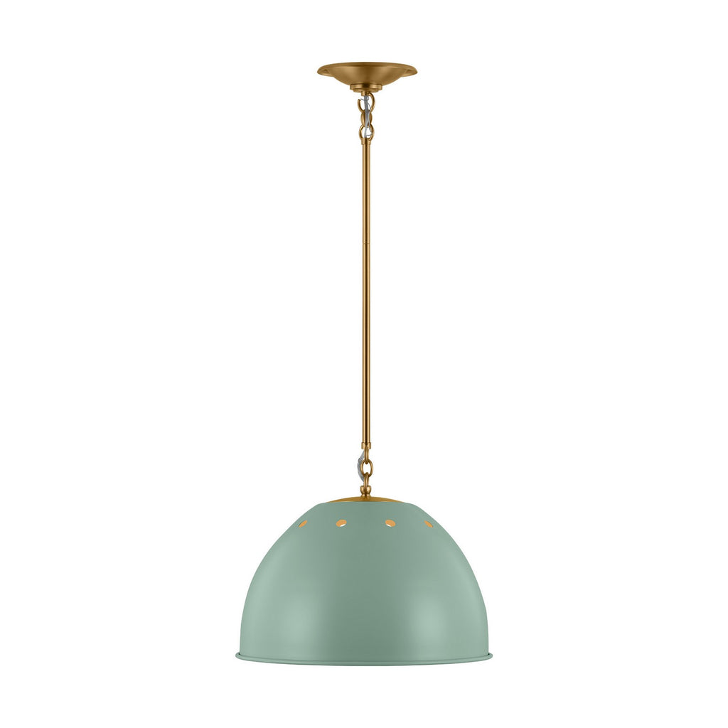 The Robbie pendants are a new enameled industrial metal shade pendant light designed by Thomas O'Brien. Robbie draws inspiration from the vintage factory-style shade with a ring of nice circular holes around the top of the dome. Special new metal fittings enhance this modern interpretation. Industrial-chic perforations along the top rim of the gleaming metal shade add charm to a classic design.