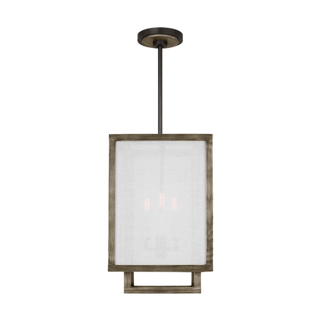 Layering is the signature staple of the Brockway series by Thom Felicia. The wood-frame-within-a-wood frame design is sheltered with linen panels allowing a hint of the architecture within to be experienced directly, while the remainder is seen diffused through the linen. The result is a light source of direct light downward and softened light through the side panel veils, creating a perfect illumination for any space.