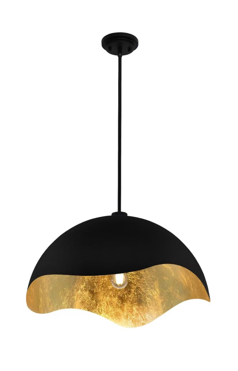 1 Light Pendant in Textured Sand Coal Black with Gold Leaf Inside