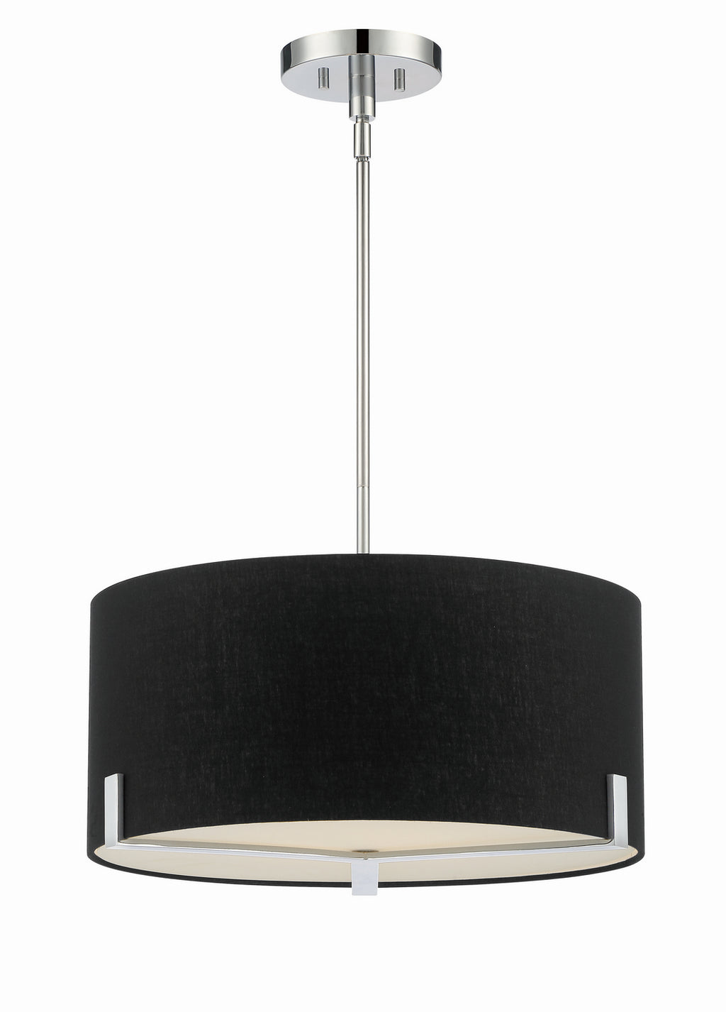 3 Light Pendant in Chrome Finish with Black Linen Shade and Etched Glass Diffuser