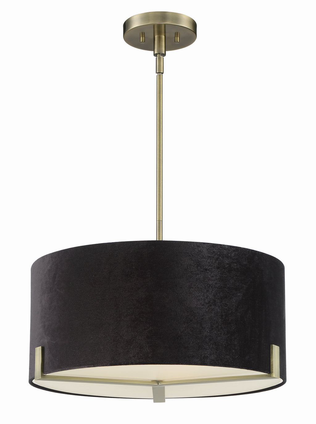 3 Light Pendant in Weathered Antique Brass Finish with Black Linen Shade and Etched Glass Diffuser