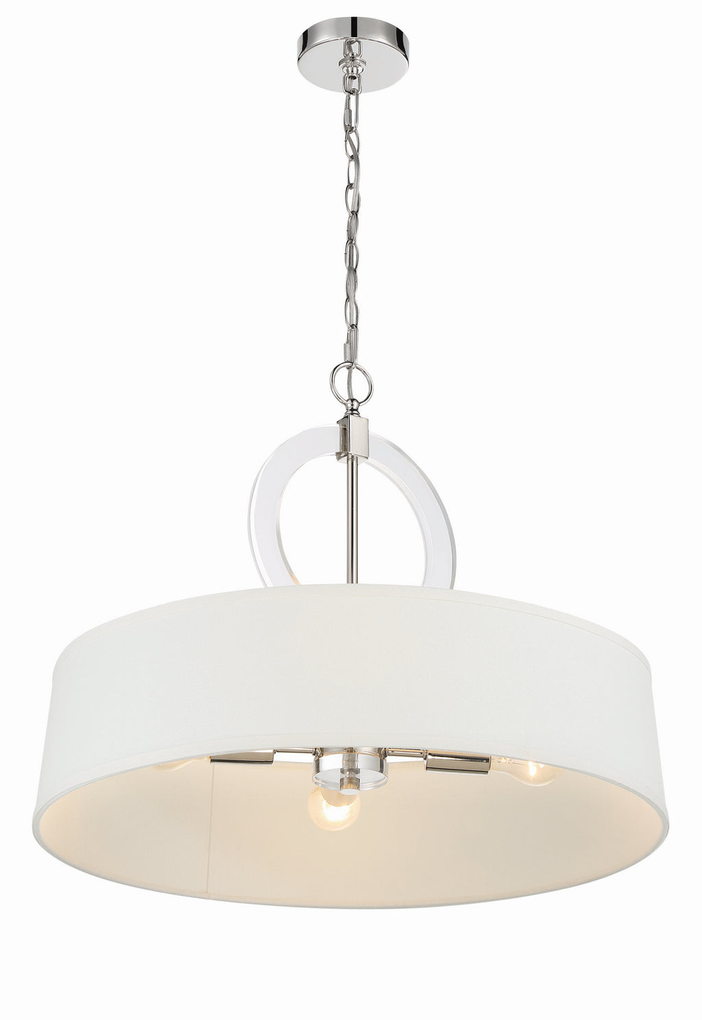 4 Light Pendant in Polished Nickel Finish with White Fabric Shade