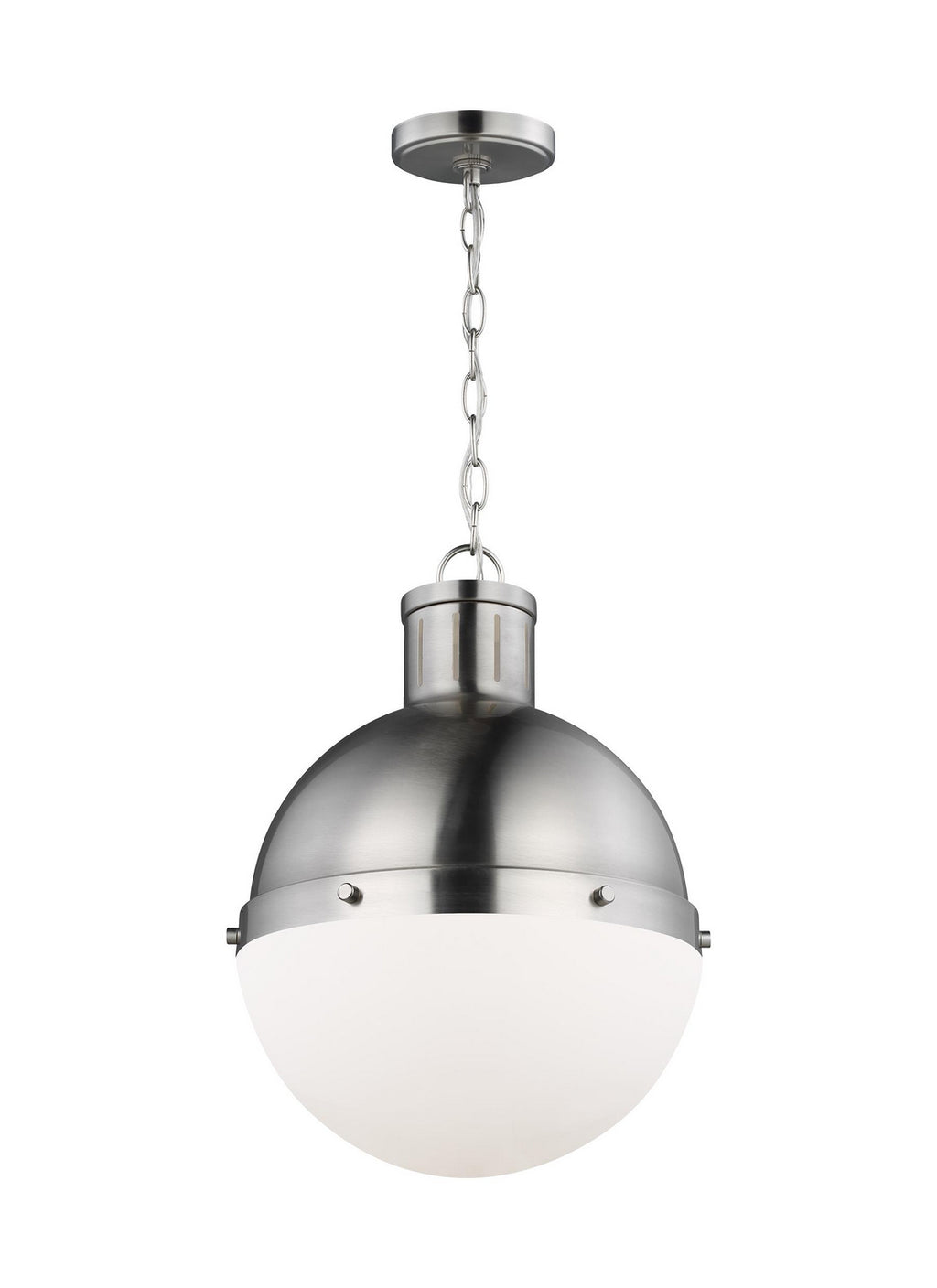 The Hanks medium modern pendant is offered in the Midnight Black/Satin Bronze, Antique Brushed Nickel, Satin Bronze, or Brushed Nickel finish. This globe style pendant is crafted with an antique finish and white glass shade, offering an approachable style with direct lighting. The multiple use of color and finishes exude mid-century modern style to help entice any updated space.