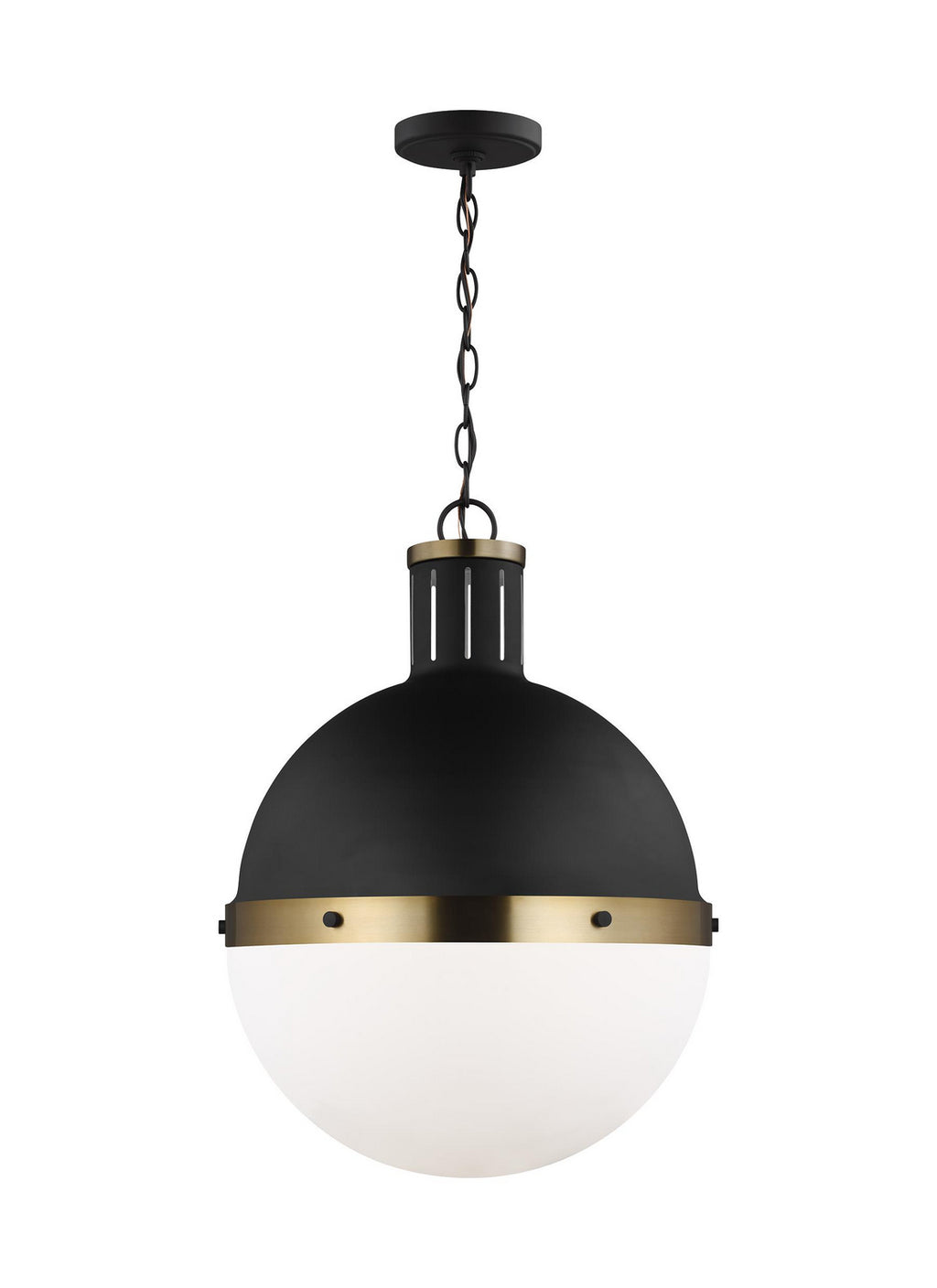 The Hanks medium modern pendant is offered in the Midnight Black/Satin Bronze, Antique Brushed Nickel, Satin Bronze, or Brushed Nickel finish. This globe style pendant is crafted with an antique finish and white glass shade, offering an approachable style with direct lighting. The multiple use of color and finishes exude mid-century modern style to help entice any updated space.