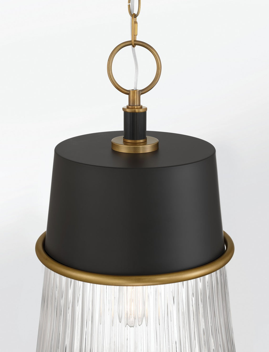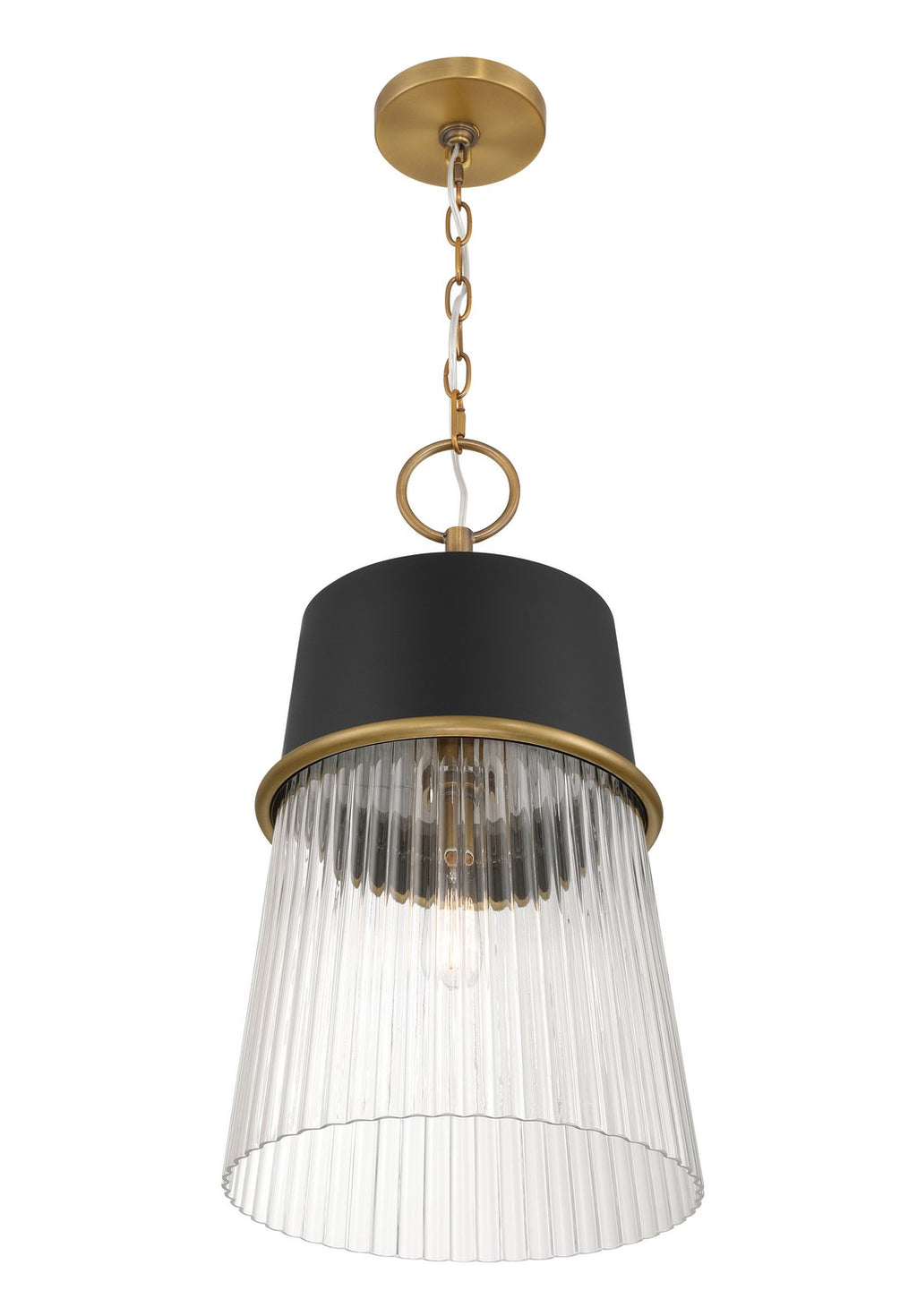 1-Light Pendant - Dark Matte Black and Legacy Brass with Clear Ribbed Glass