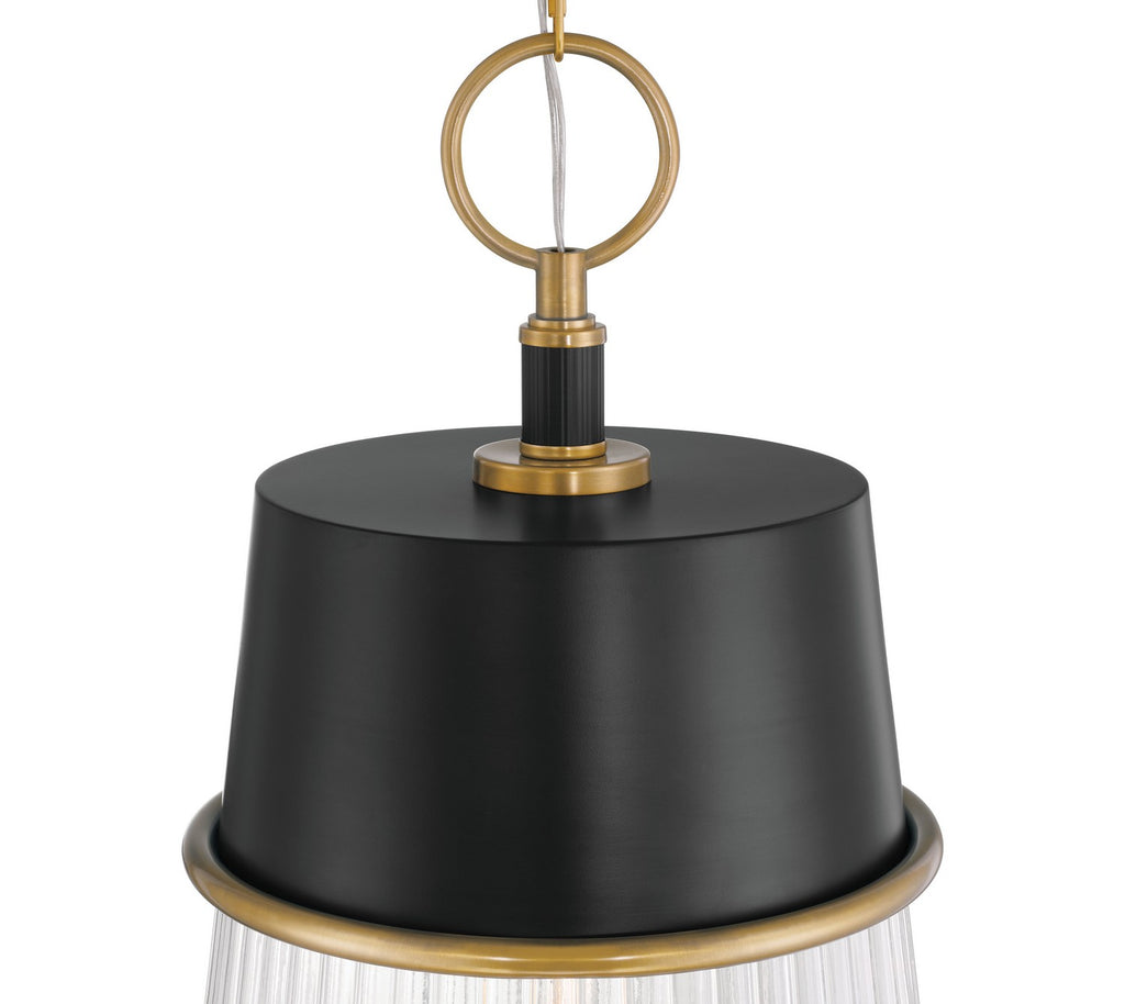 1-Light Pendant - Dark Matte Black and Legacy Brass with Clear Ribbed Glass