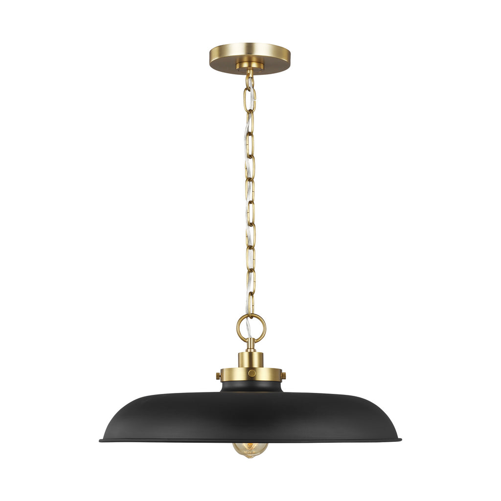 Inspired by various classic utility silhouettes - from factory lighting to barn sconces - capped by contrasting metal hardware. Each shade of the Wellfleet series by Chapman & Myers is available multiple sizes of 3 versatile profiles, either a flat farm dome, a traditional factory dome, or tapered cone. The shades are available with either a black or white finish and are paired with either a burnished brass or polished nickel collar, chain and canopy.