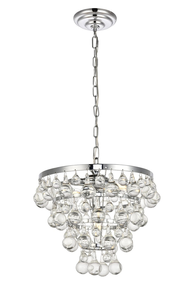 Look to the Kora collection for fascinating pendant lamps that will shimmer in endless variations. The Iron and Crystal fixture features royal-cut clear Crystals of different sizes suspended from interior rings of gleaming Chrome. The etched drop pendant Crystals with swirlingSilver bands give this design a distinctive look. Light from three bulbs (Not provided) creates a marvelous display of ever-changing reflections. Dangling Crystal balls anchor the bowl-shaped fixture and create a focal point of interest. This dazzling light will add glamor to a kitchen, dining room, bedroom, or foyer.