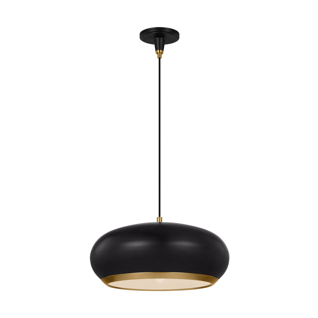 Inspired by various vases and accessories in his collection, the Clasica Pendants by Thomas O'Brien are all about simple, organic shapes. Perfect for any contemporary space. Clasica pendants are very unique shapes, accented with a banded detail at the bottom and top fitting for a distinctive character. The canopy was specifically designed to coordinate the design throughout the entire fixture. Providing ample downward focused light this lamp looks stunning on its own or in multiples. Available in Aged Iron and Matte White.
