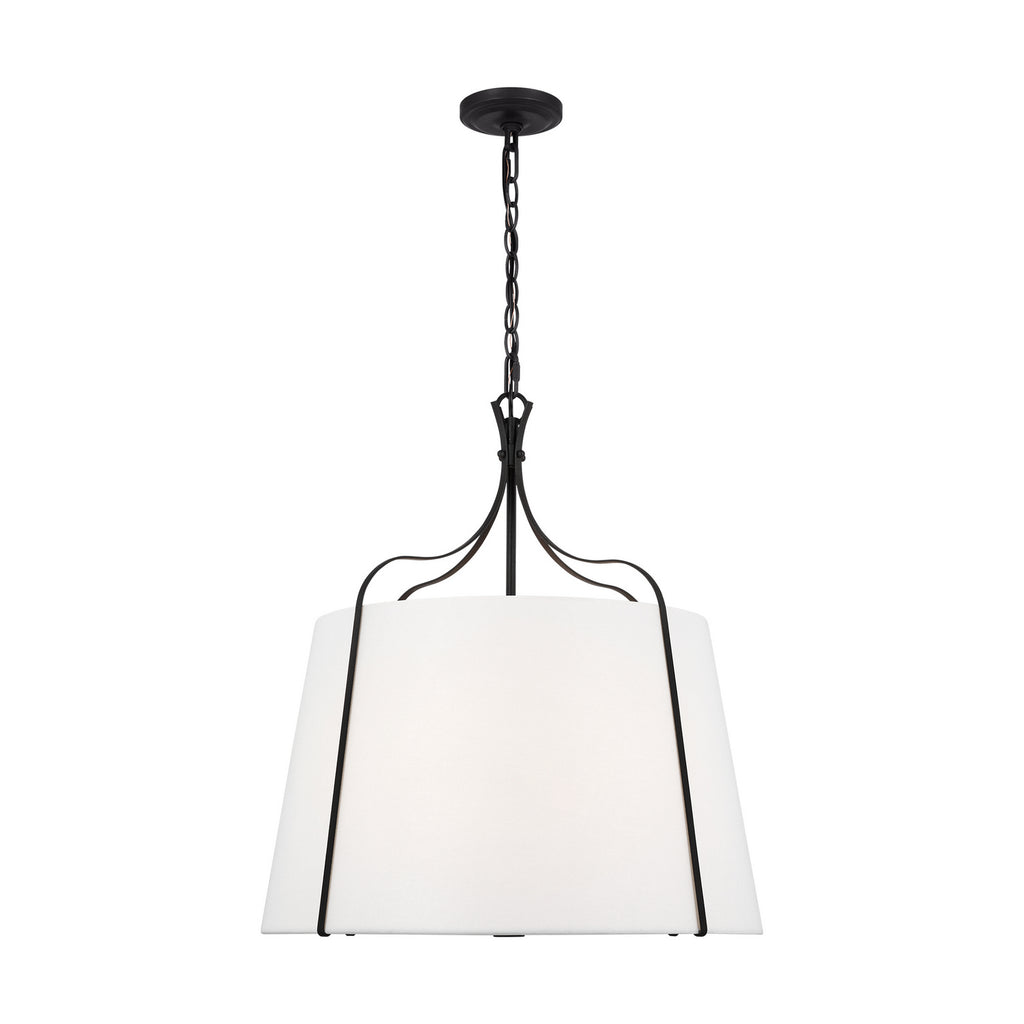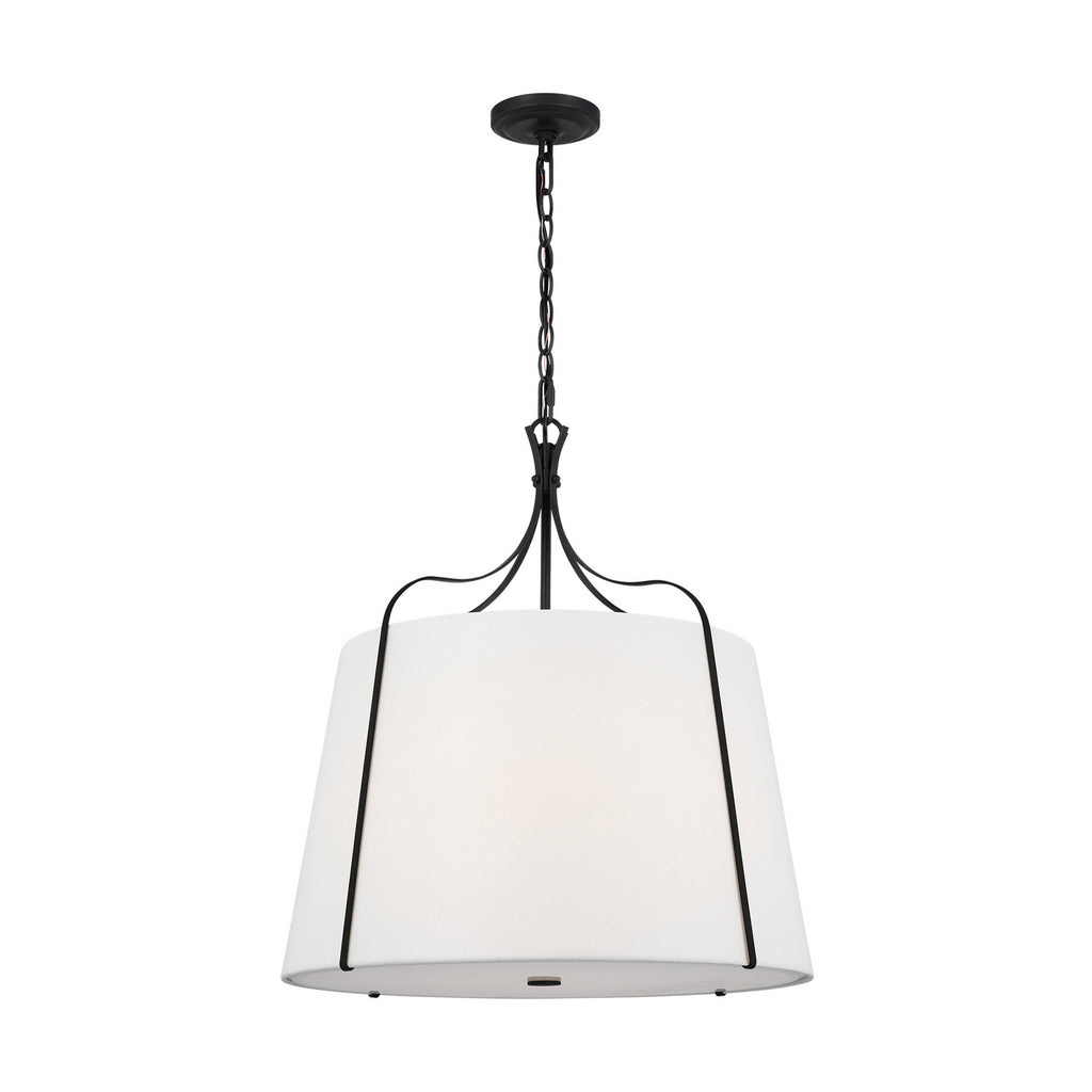 The Leander Pendant by Alexa Hampton makes an immediate impression in any space with its structural iron fixture ensconced in a linen barrel shade. Leander offers a modern twist on a classic lantern design Beautifully structured frame that maintains an open, airy feel