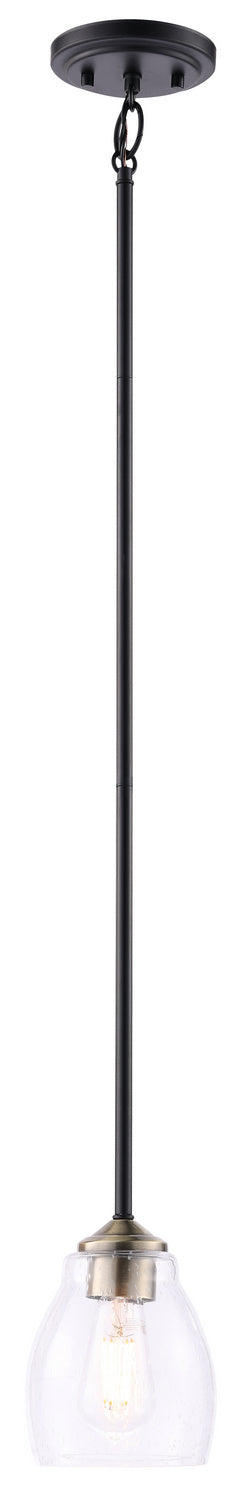 1 Light Mini Pendant in Coal with Stained Brass Finish with Clear Seeded Glass