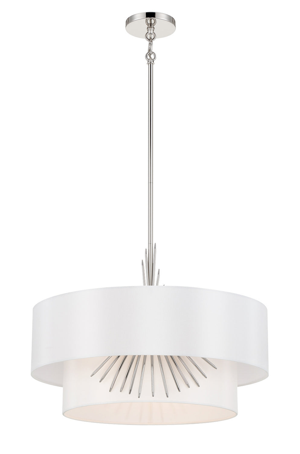 3 Light Pendant in Polished Nickel with a White Silk Shade, a Robin Baron Design