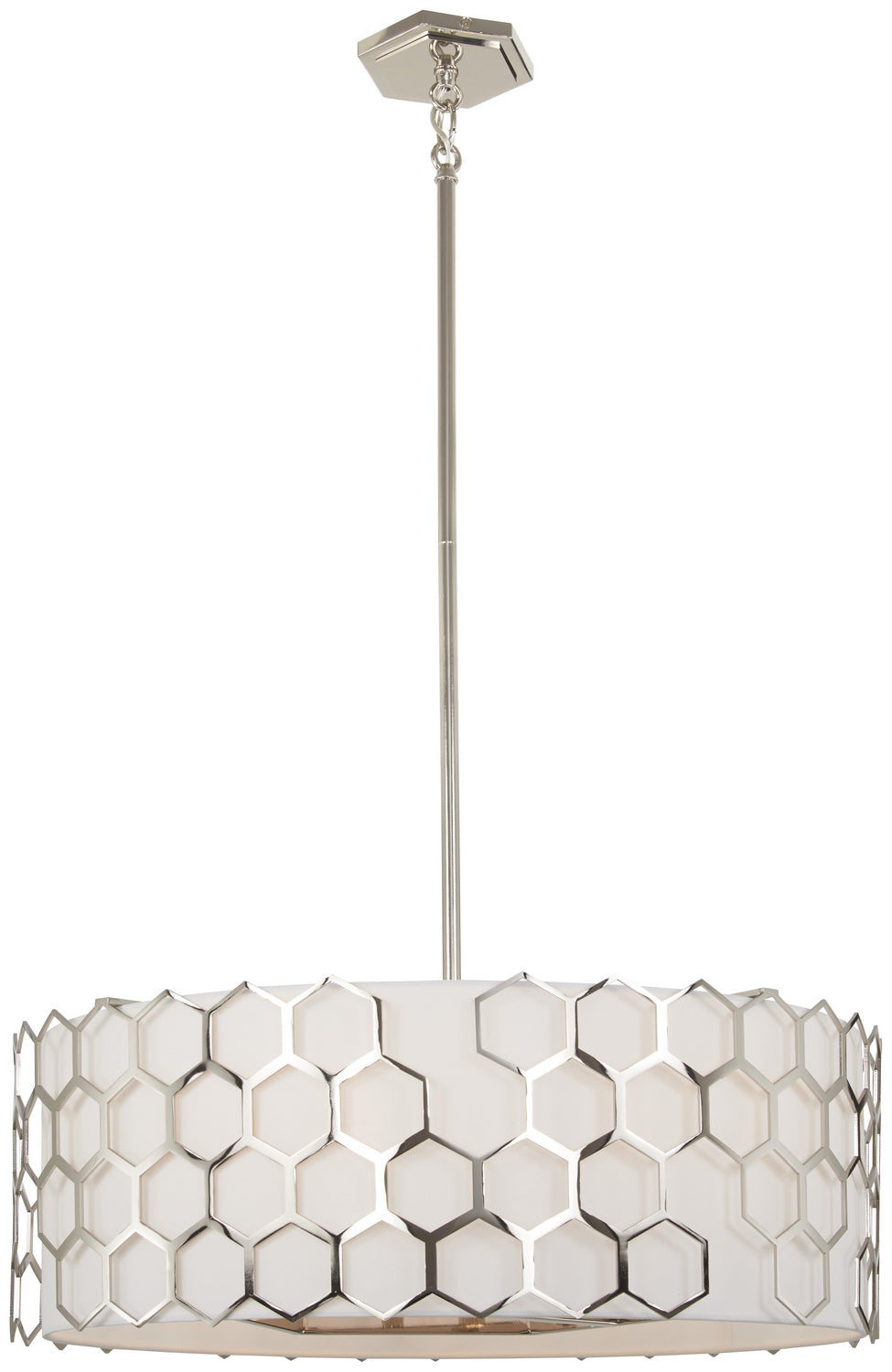 6 Light Pendant in Polished Nickel with White Linen Shade