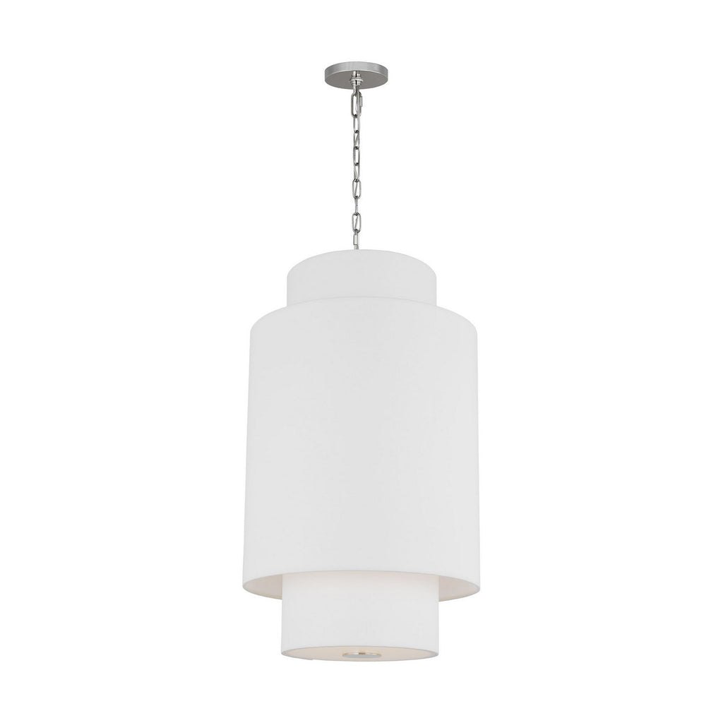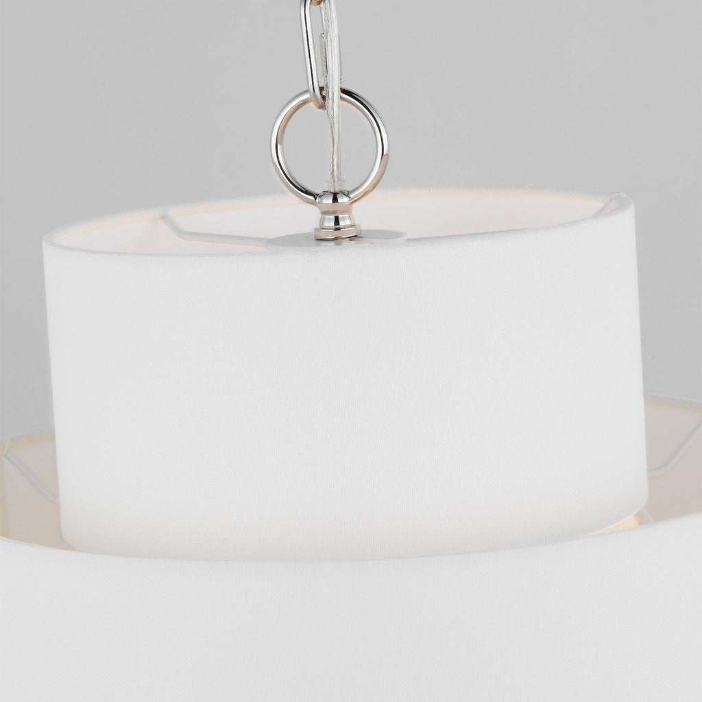 Inspired by kate spade new york whimsical geometry and playful lines, Sawyer has a striking silhouette with graphically taped shades. The Sawyer is a wide playful hanging shade with arched lines and wide, graphically taped shades. This simple and graphic chandelier would be great over a dining table or nook, as well as in a living room scenario.