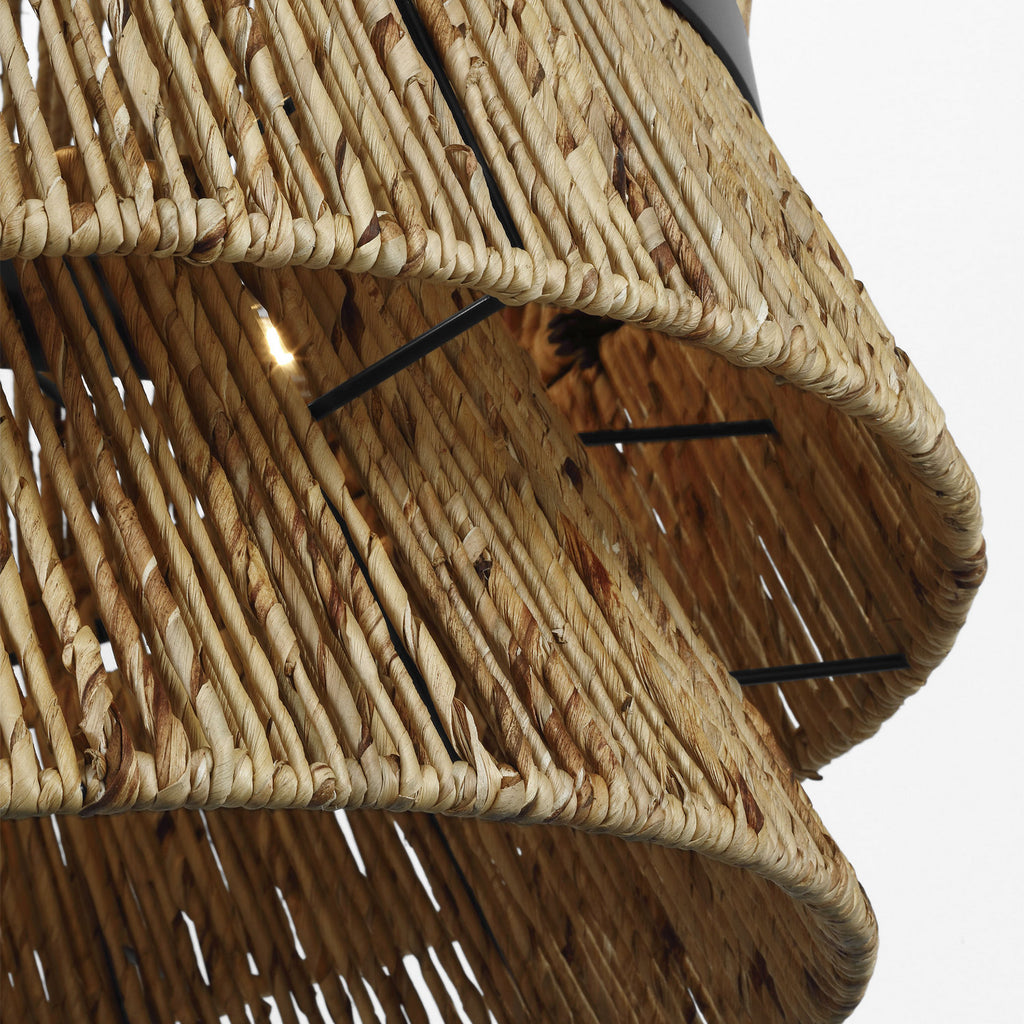 Make a bold style statement with the coastal-inspired organic Thurlo series by Drew & Jonathan Scott. Crafted of natural abaca rope, hand wrapped around the frame for a modern bohemian style and accented with a metal band for a tailored look. Filtering the light from within, each piece creates a play of light and shadow in a room, adding an inviting ambiance.
