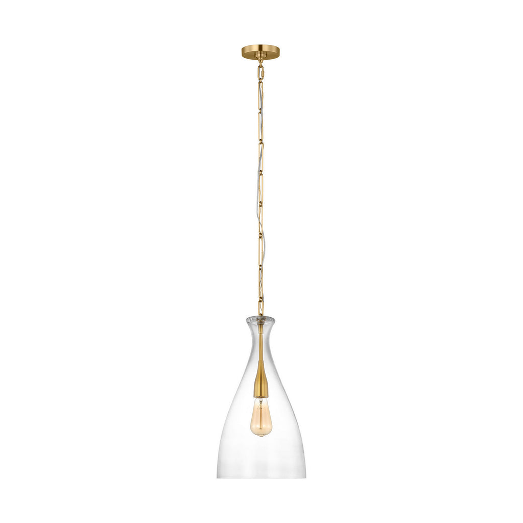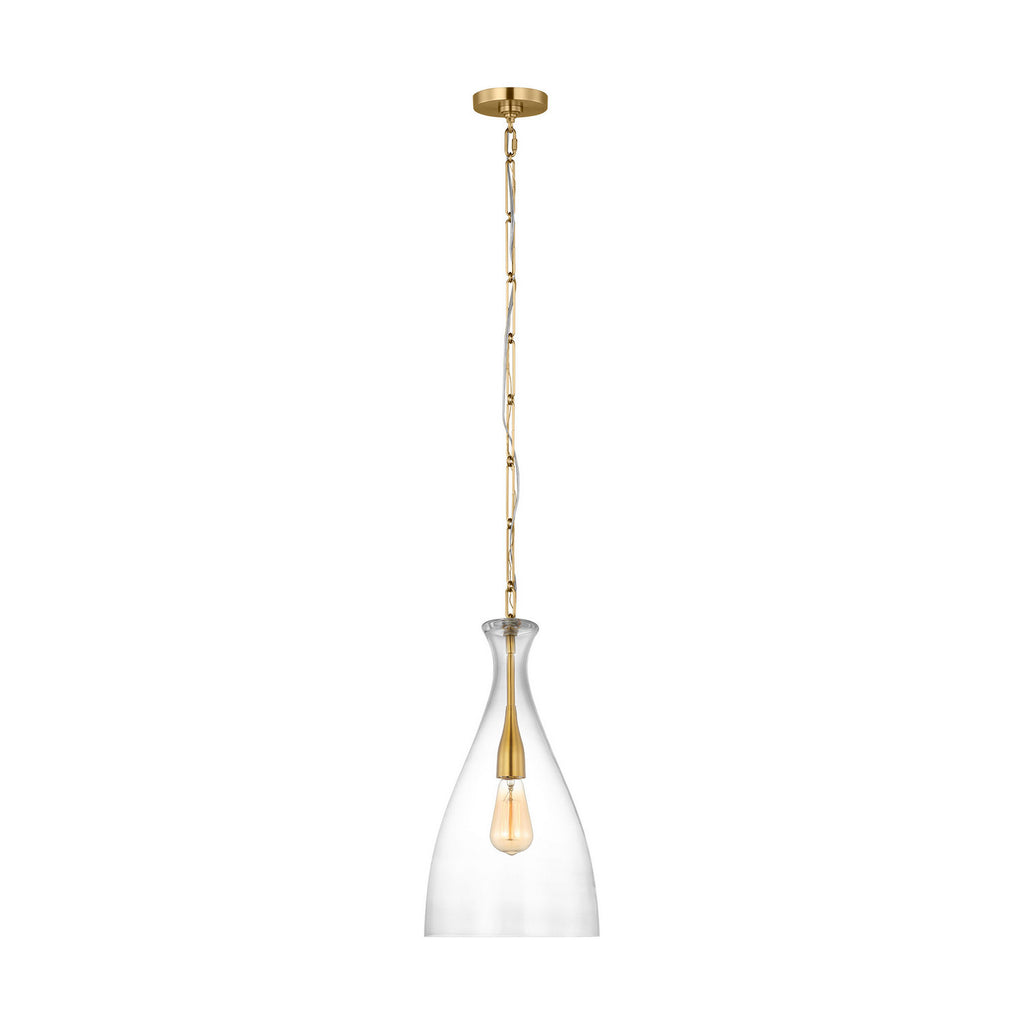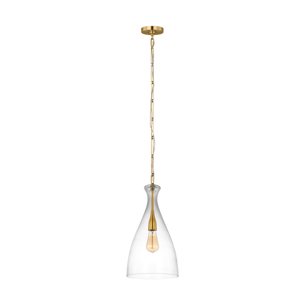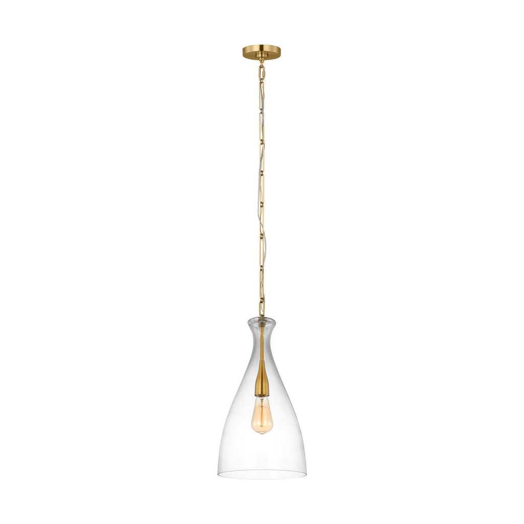 Following a classic hourglass shape with a wide taper, the clear glass shade makes a design feature out of the tapered socket cup and bulb. It includes an adjustable chain to vary the drop for multiple uses. This versatile pendant light is a perfect addition over a kitchen island as a single or as a pair, as well as over a bistro or dining table.