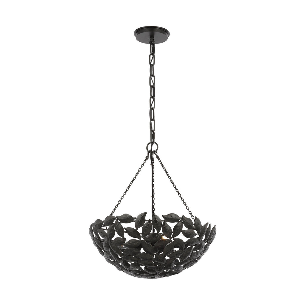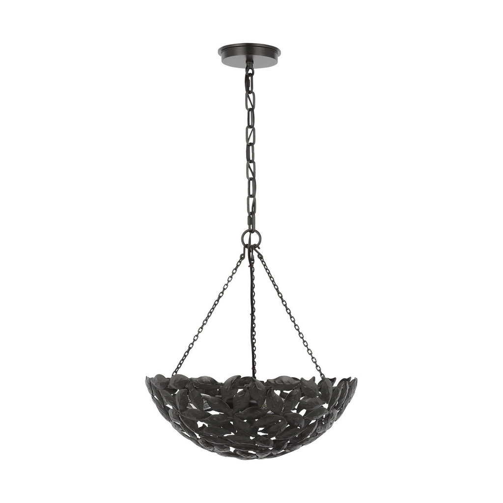 Drawing inspiration from a classic bowl pendant and nature. The Kelan series by Alexa Hampton features a leaf motif, detailed by hand in a stunning display that captivates the design. Crafted with meticulous attention to detail, the delicate motif leaves gracefully cascade from the central fixture, casting a warm and inviting glow Kelan is a soft, feminine contemporary piece that is beautiful in any space. Available sizes include small, medium, and large lanterns.