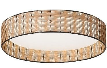 LÁMPARA DE TECHO TIPO PLAFON LED 30W, INTERRUPTOR PARA AJUSTE DE TONALIDAD DE LUZ CCT 30K, 40K,60K, 110-240V, 50-60HZ, GRADO DE PROTECCION IP20, DIMENSIONES: D-43CM H-10CM , ACABADO COLOR MADERA + MATERIAL RATAN + ACRILICO, MARCA HOME DELIGHT.