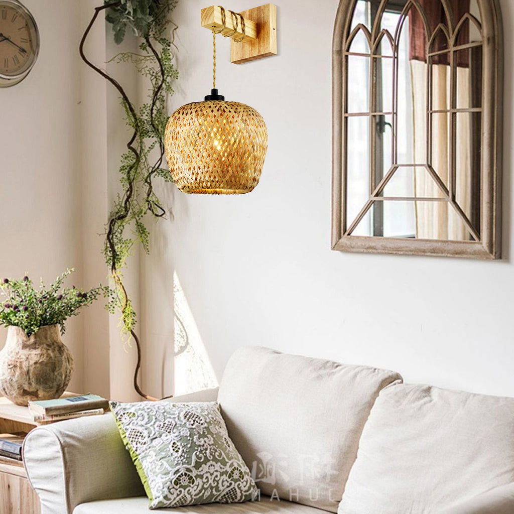 LÁMPARA DE PARED DECORATIVA 1XE27-40W, 110-240V, 50-60HZ, GRADO DE PROTECCION IP20, DIMENSIONES: W-23CM * H-27CM * H-52CM, ACABADO BAMBU + MATERIAL METAL + BAMBU + MADERA, MARCA HOME DELIGHT.