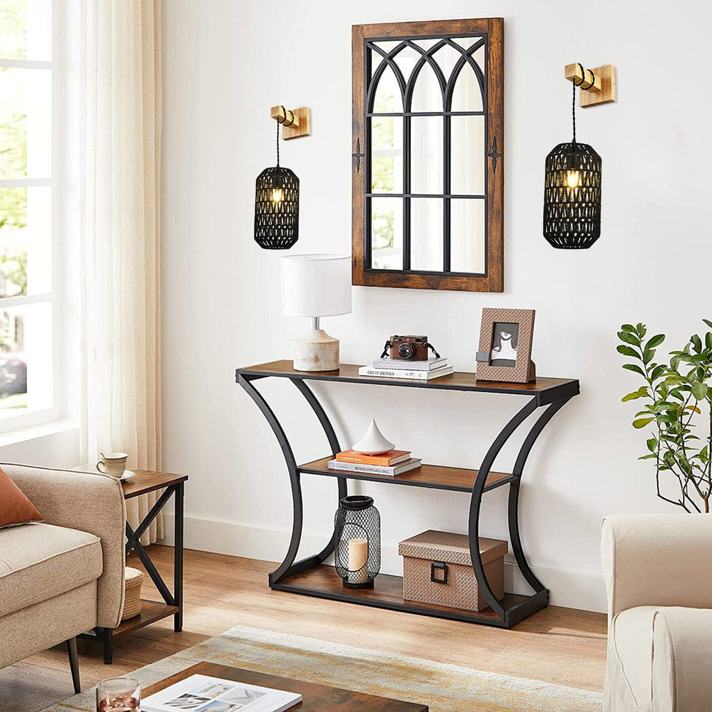 LÁMPARA DE PARED DECORATIVA 1XE27-40W, 110-240V, 50-60HZ, GRADO DE PROTECCION IP20, DIMENSIONES: W-16.5CM * E-24CM * H-60CM, ACABADO NEGRO + MATERIAL METAL + + CUERDA+ MADERA, MARCA HOME DELIGHT.