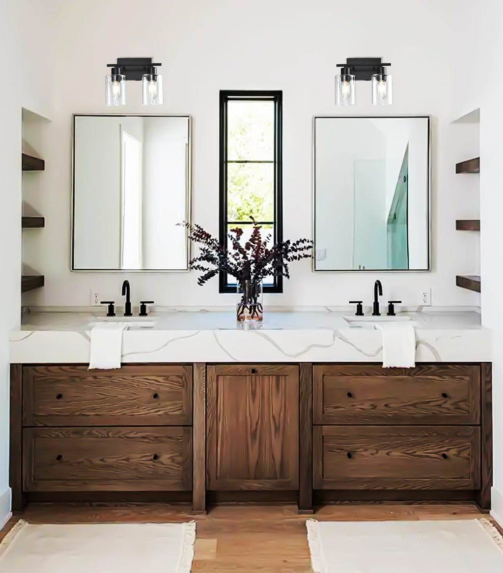 LÁMPARA DE PARED DECORATIVA 2XE27-40W, 110-240V, 50-60HZ, GRADO DE PROTECCION IP20, ACABADO NEGRO + MATERIAL METAL + VIDRIO, DIMENSIONES: W-27CM * E-14.5CM * H-24.5CM, MARCA HOME DELIGHT.