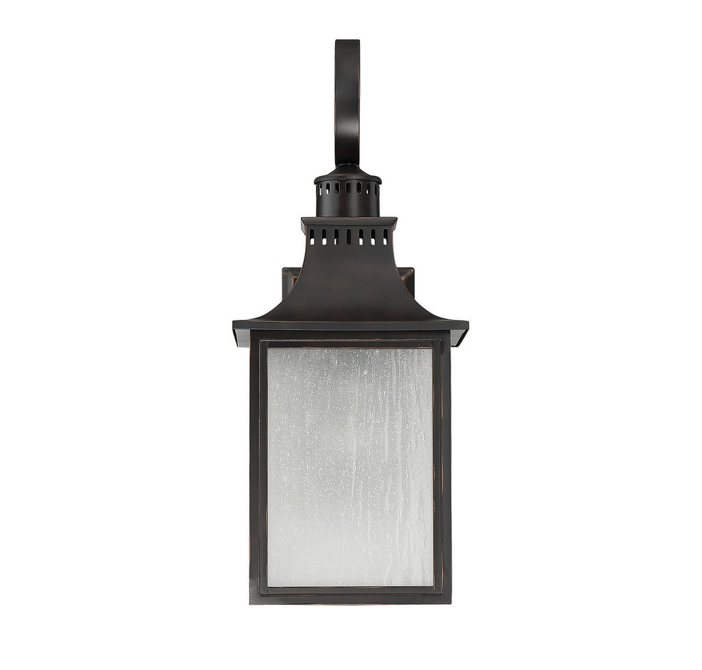 The Savoy House Monte Grande 3-light outdoor wall lantern is an elegant, clean-lined version of a classic, box-shaped lantern. It's a timeless and pleasing style from designer Karyl Pierce Paxton, a wall lantern that will illuminate the exterior of your home and welcome you and your guests with a familiar, traditional aesthetic. The slate black finish is a wonderful neutral that goes with other hardware and architectural materials. The panels are made of beautiful pale cream seeded glass. Three 40W candelabra size bulbs provide plenty of soft light. This lantern is 10" wide, 26.75" high and UL rated for wet locations, so it's perfect for the walls of your porch, patio, sunroom, pergola and other outdoor living areas.