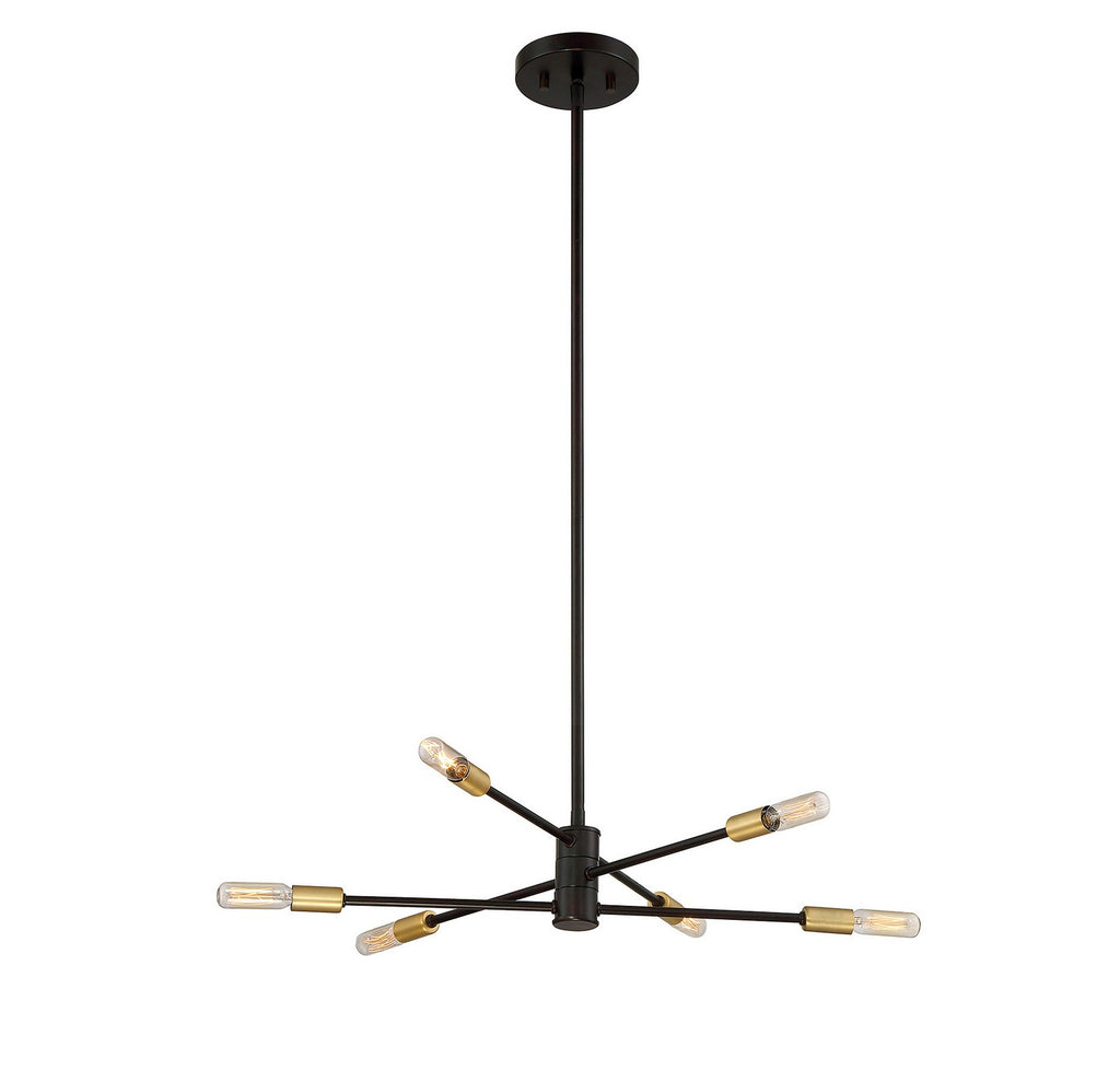 The open, structured look of the Savoy House Lyrique 6-light chandelier is a great choice for today's stylish interiors. The arms are adjustable, allowing you to create custom looks and change them on the fly. Finished in bronze with brass accents. The hanging height is adjustable and this fixture can be mounted on a sloped ceiling. Chandeliers can be used in a wide variety of spaces, including but certainly not limited to dining rooms, living rooms, great rooms, bedrooms, kitchens, foyers, offices and even bathrooms! Bulbs not included. Try using stylized bulbs such as tubular shape for a different look! The finish can be matched with bronze or brass hardware or mixed with hardware in other finishes. Lyrique is perfect for contemporary style spaces and any room that has an edgy touch. When you choose a Savoy House lighting fixture, you can be certain you've selected a piece that will withstand the test of time.