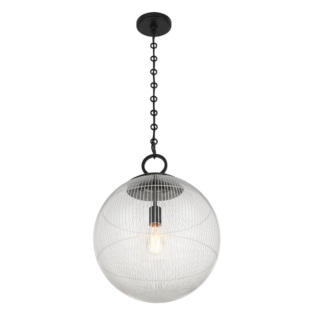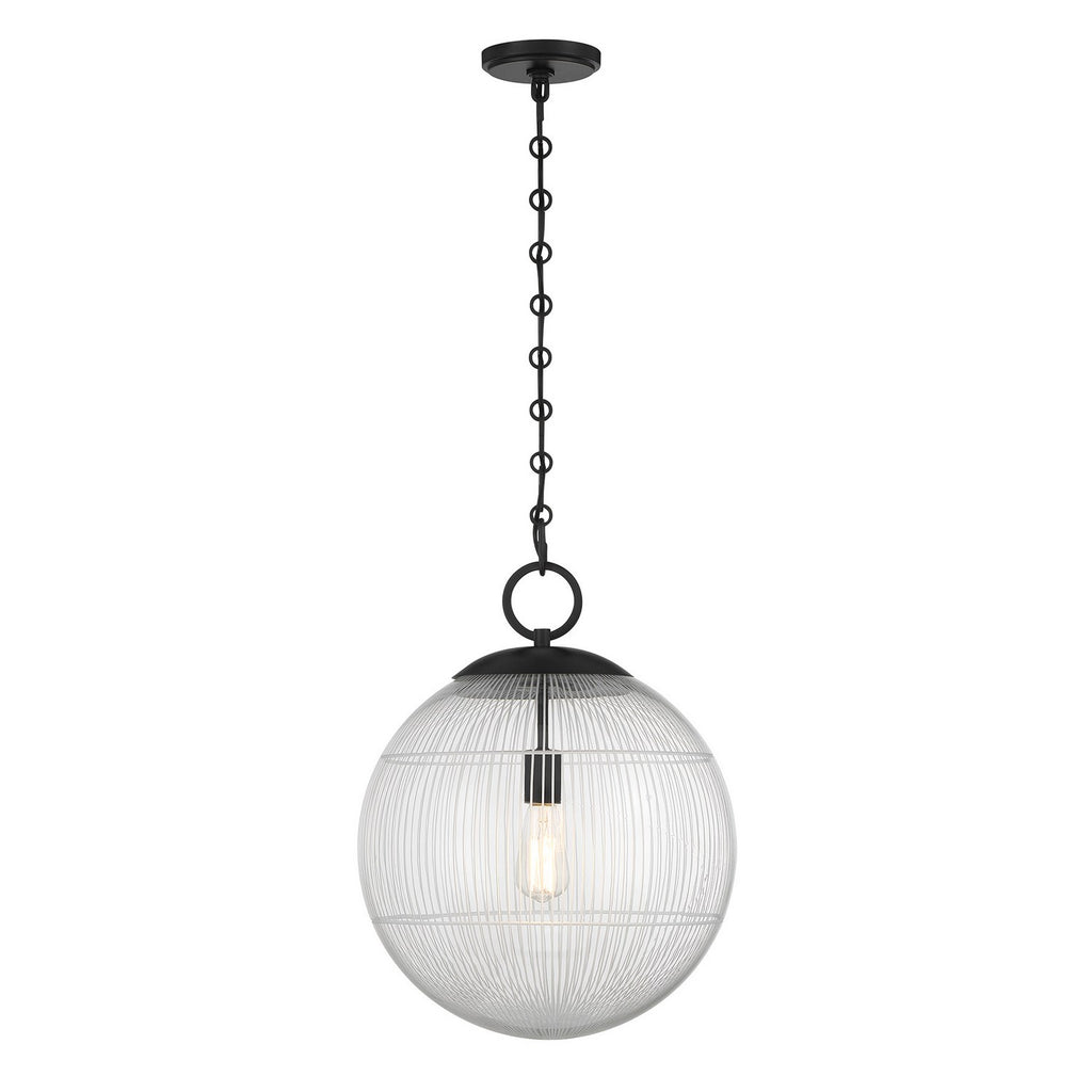 The Savoy House Cabot 1-light pendant takes the beauty of pendant lights to a whole new level with its orb of segmented glass. This orb has an intriguing slim cage-like pattern etched into it, creating a huge dose of texture and style whether the light is on or off. Circular hardware detailing echoes the shape of the glass and wears a Matte Black finish beautifully. Cabot is 19.25" in height and 16" in width. Uses one standard size bulb of up to 60 watts. Bulb not included. Comes with 120" of chain.