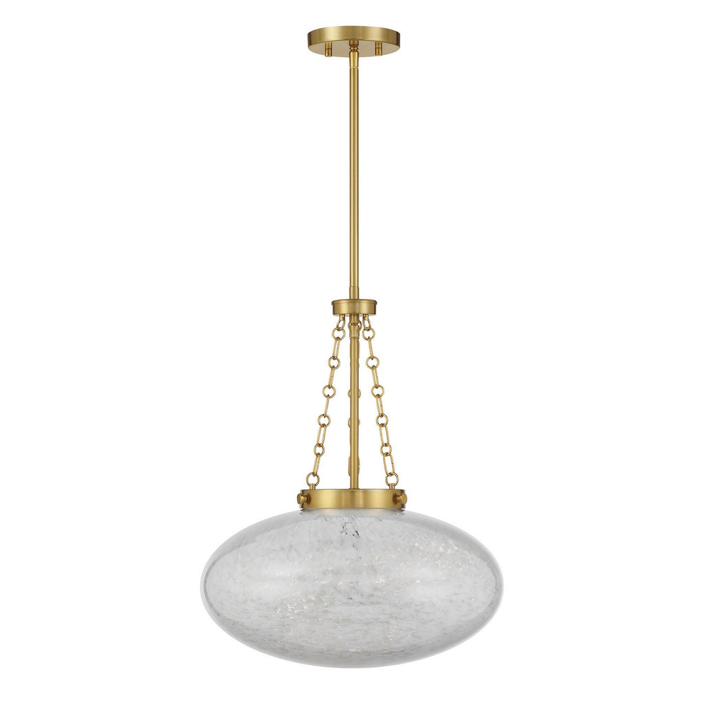 Get a bright and vintage-inspired look with the Savoy House Willow 1-light pendant. It has a mesmerizing, eye-catching oval shade of cloud glass, detailed hanging chain and a Warm Brass finish. Willow is 16.5" in width and has an adjustable height ranging from 20.25" to 74.25". Uses one standard size bulb of up to 60 watts. Bulb not included. Comes with four 12" downrods and one 6" downrod.
