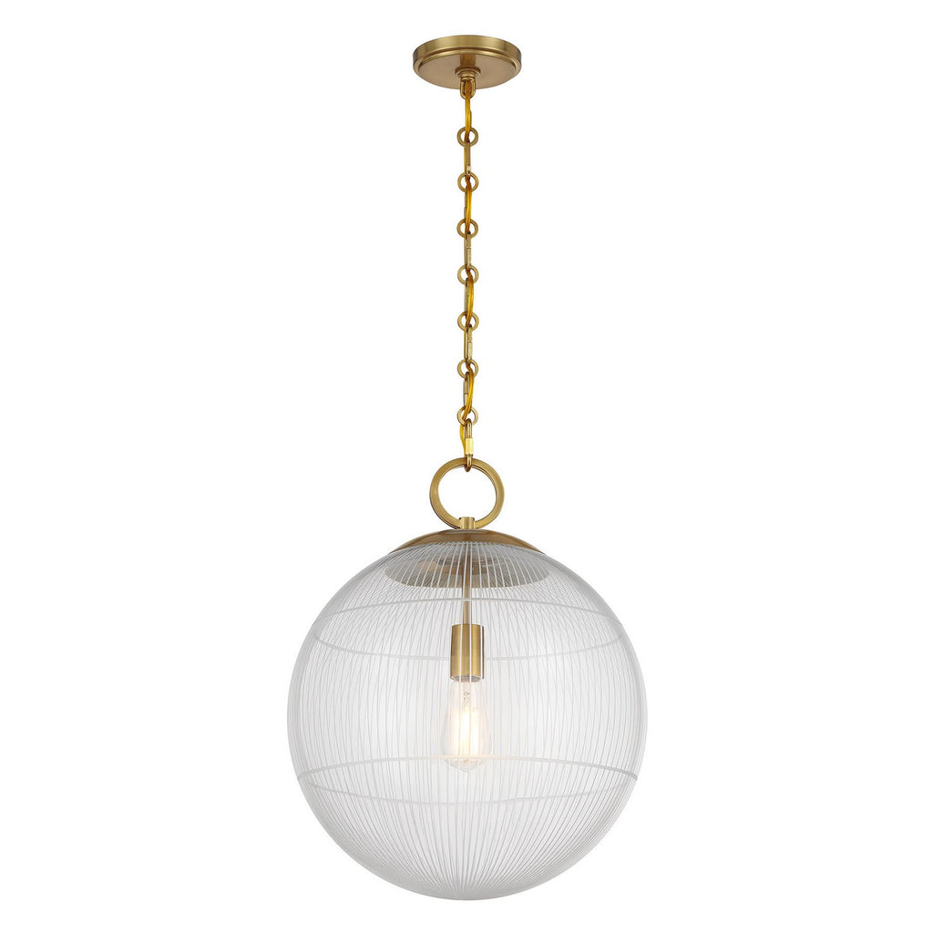 The Savoy House Cabot 1-light pendant takes the beauty of pendant lights to a whole new level with its orb of segmented glass. This orb has an intriguing slim cage-like pattern etched into it, creating a huge dose of texture and style whether the light is on or off. Circular hardware detailing echoes the shape of the glass and wears a Warm Brass finish beautifully. Cabot is 19.25" in height and 16" in width. Uses one standard size bulb of up to 60 watts. Bulb not included. Comes with 120" of chain.