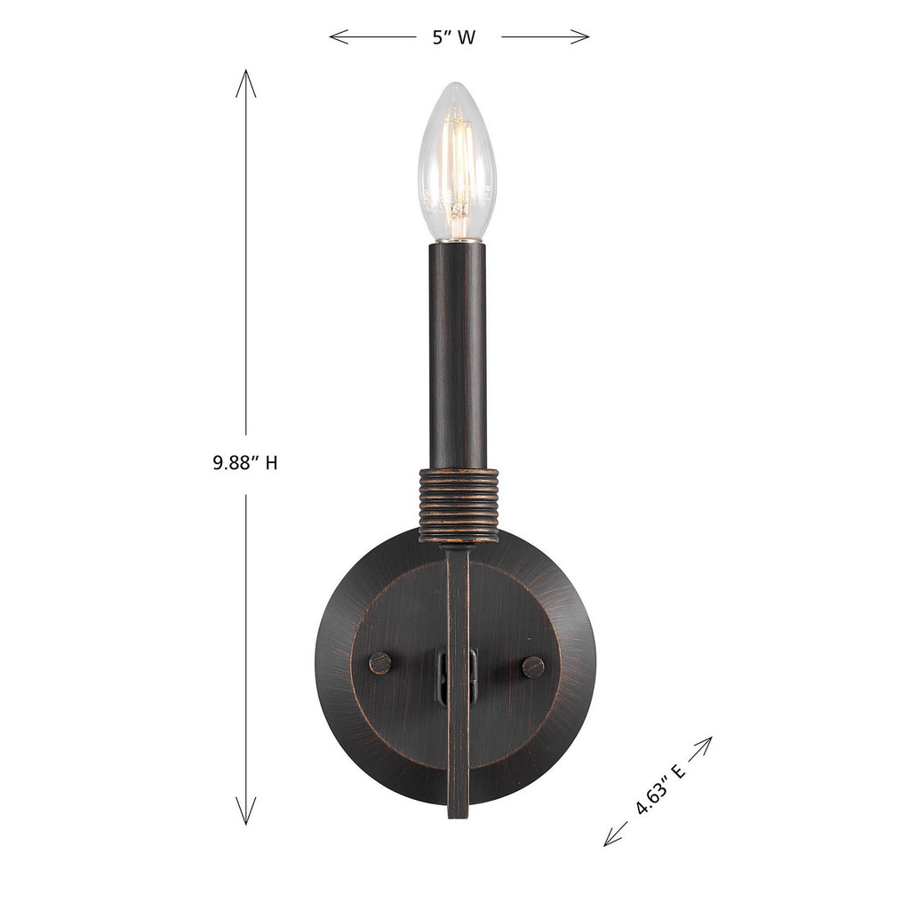 It is often said that lighting is the jewelry of the home. The Savoy House Gardner 1-light sconce perfectly exemplifies this saying! It features a dramatically curving bowtie-like arm that wears a wrapped metal accent as if it was a bangle. This metal accent also adorns the base of the candle. The Champagne Mist finish is bold, beautiful and textural. Gardner is 9.88" in height, 5" in width and extends 4.63" from the wall. It uses one candelabra size bulb of up to 60 watts. Bulb not included. This sconce is damp area rated.