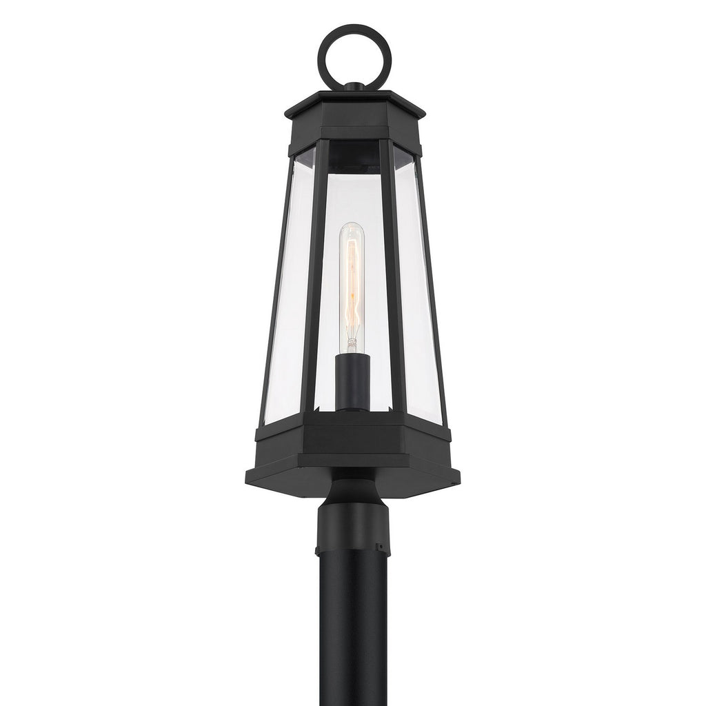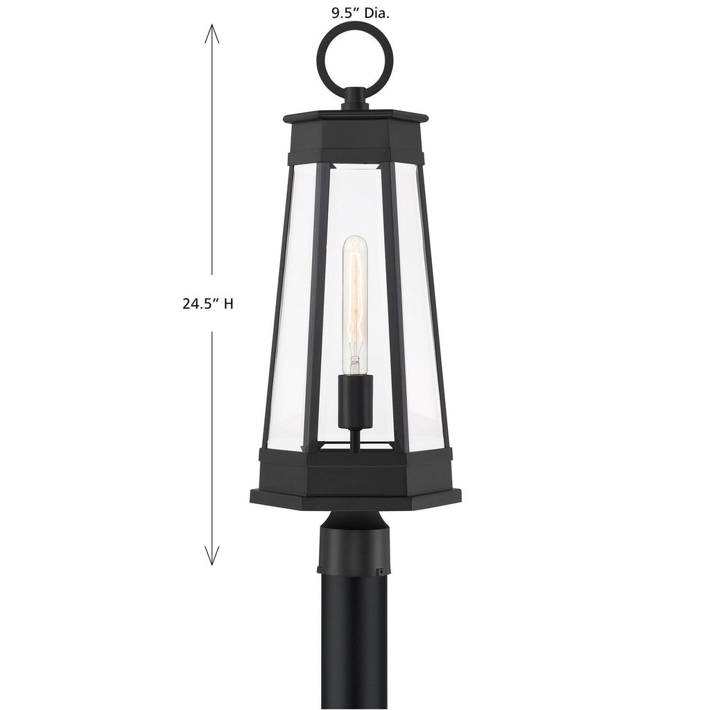 Light the way home with the terrific transitional style of the Savoy House Payne 1-light outdoor post light. It has standout style thanks to panes of clear beveled glass, thoughtful geometric detailing and a versatile Matte Black finish. Use it solo or in groupings to create a great first impression. Payne is 24.5" in height and 9.5" in width. Uses one standard size bulb of up to 60 watts. Bulb not included. Payne is wet area rated for use in covered or uncovered outdoor areas.